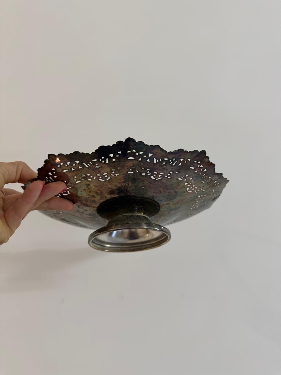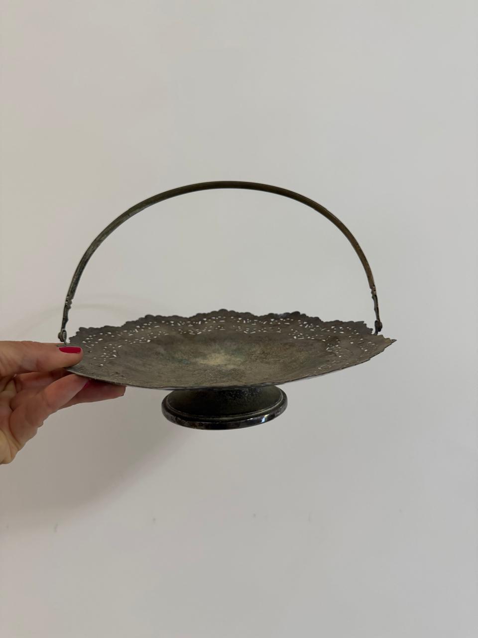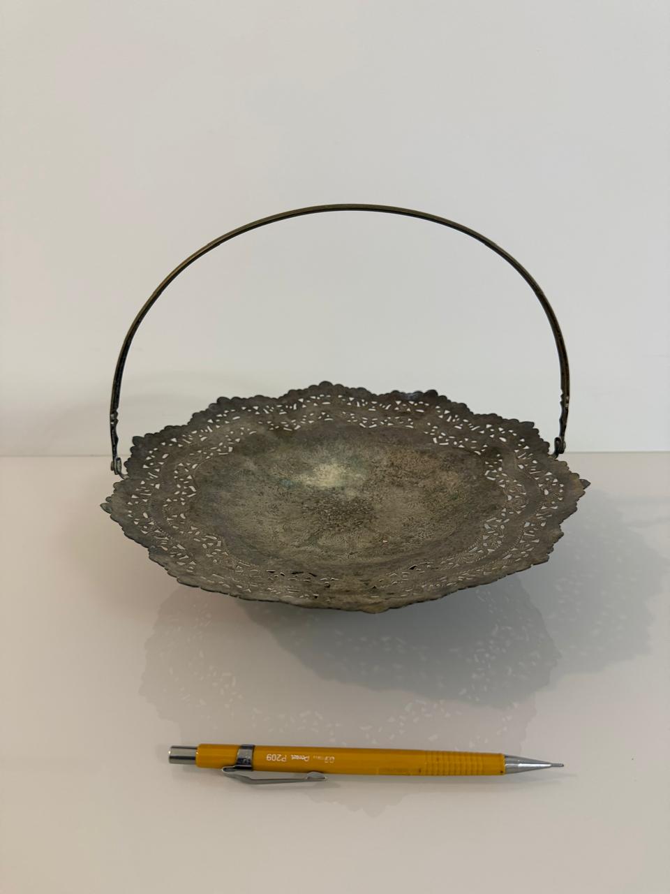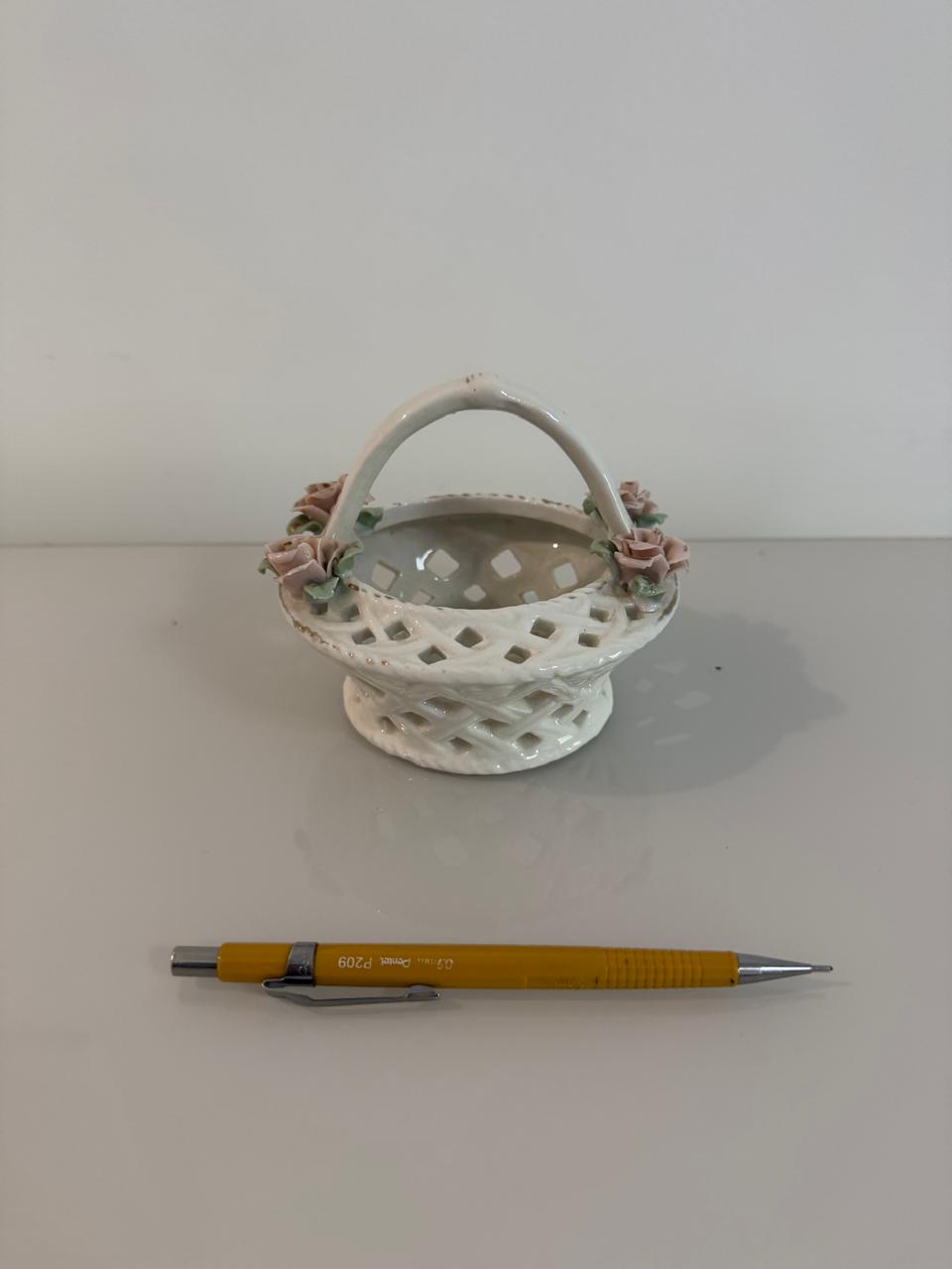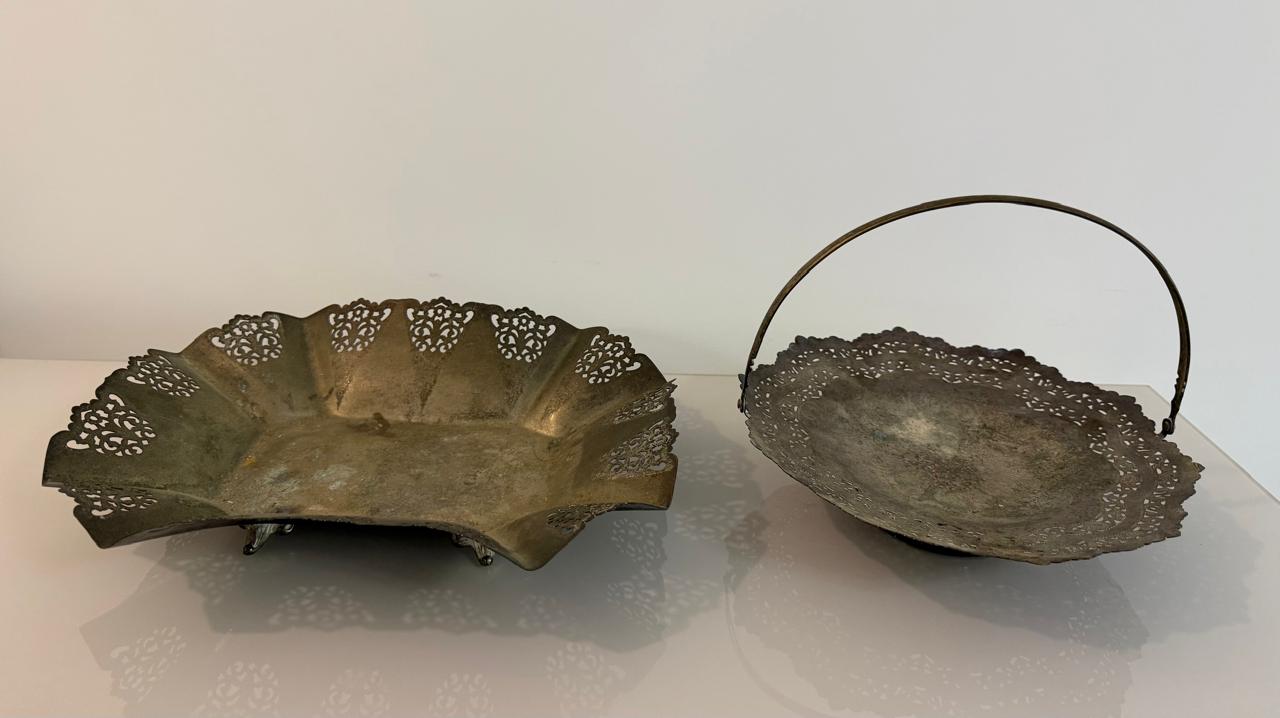 LOTE ÚNICO ! 2 CESTAS DE PRATA COM RENDADO VAZADO + 1 MINI CESTINHA DECORATIVA PORCELANA — A135.14