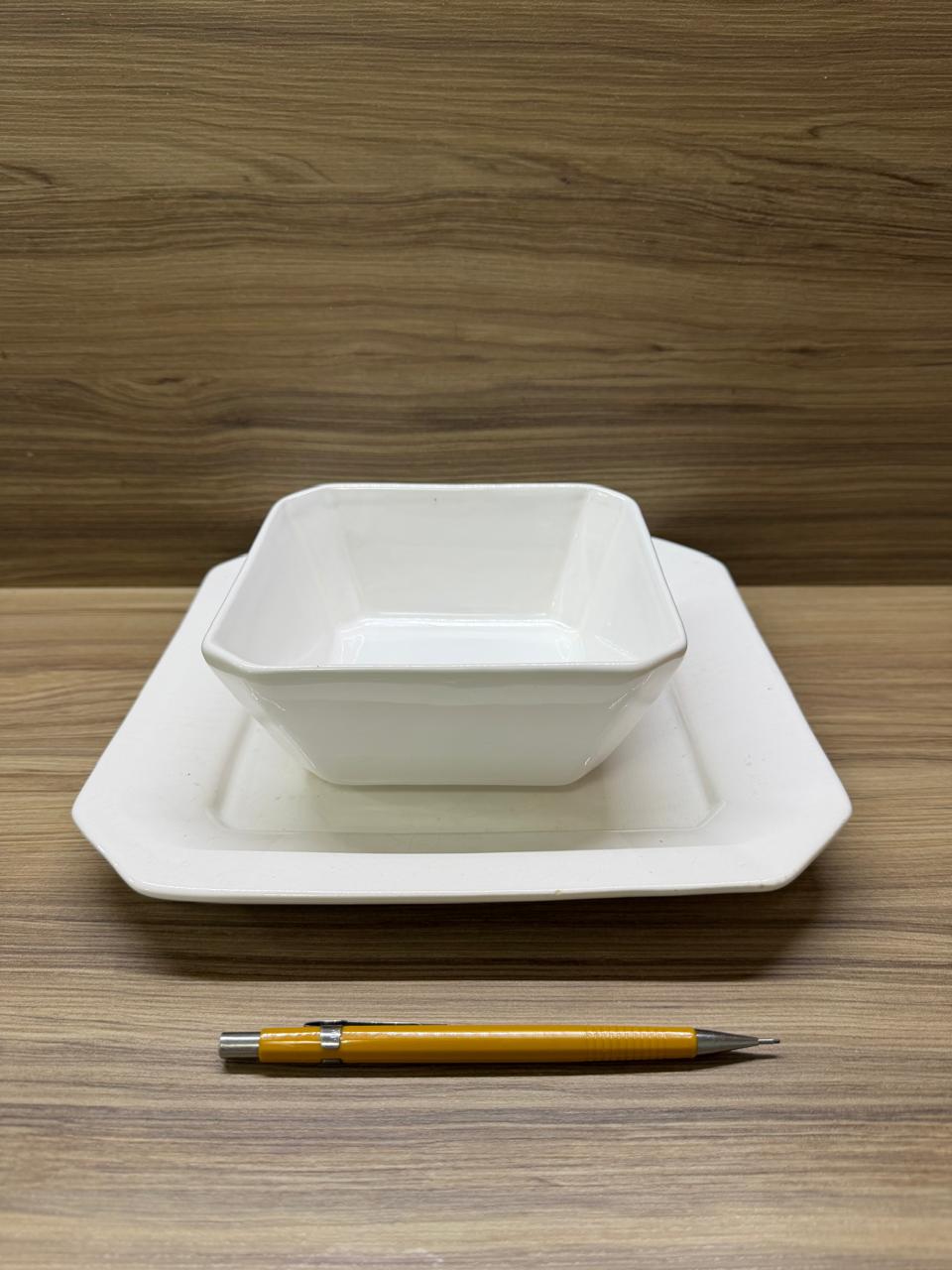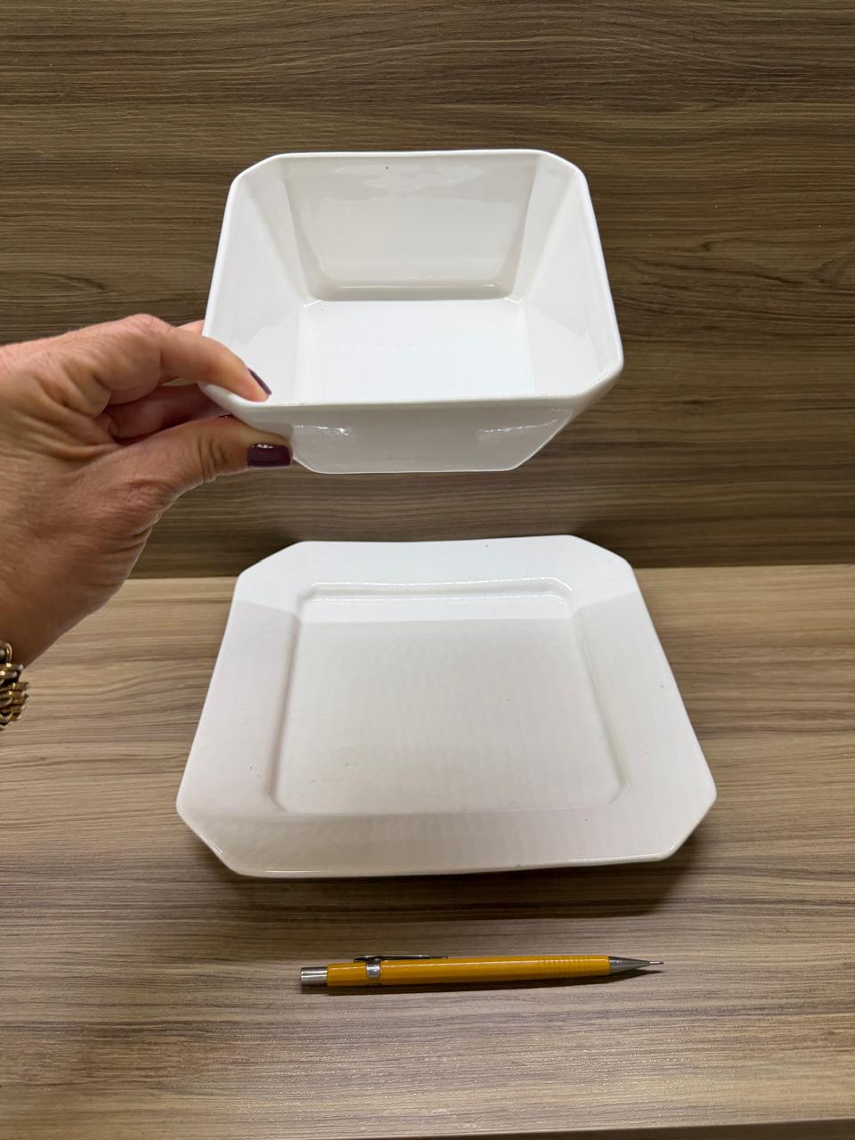 LOTE ÚNICO – 2 PARES DE PRATOS RASOS + 2 BOWLS – CHANFRADOS – BRANCO — I016.711