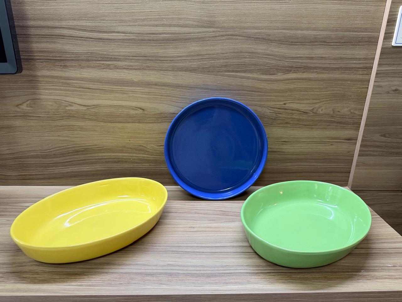 LOTE ÚNICO – 3 TRAVESSAS COLORIDAS – CERÂMICA ESMALTADA – REFRATÁRIOS — I016.712