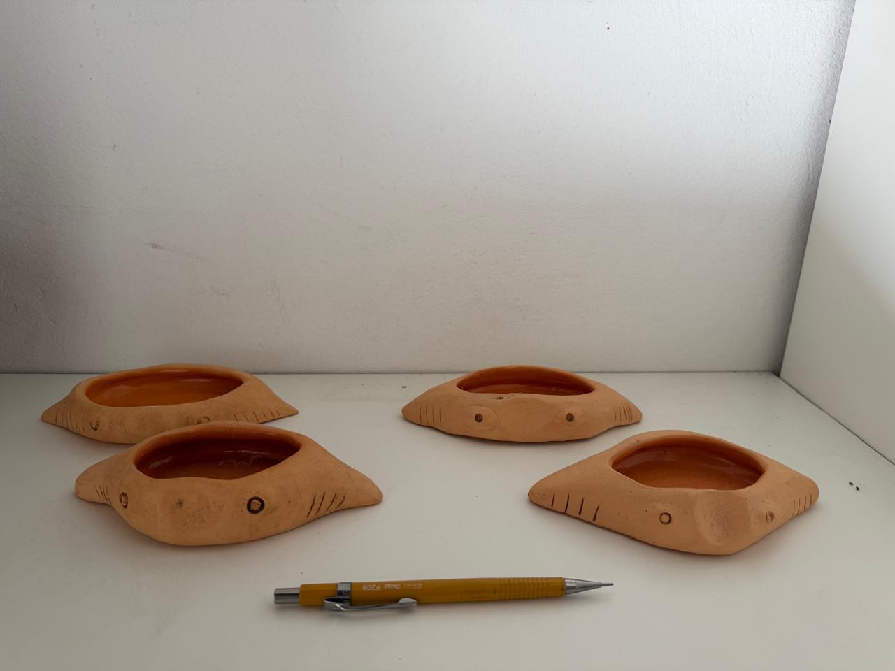 LOTE ÚNICO – 4 CASQUINHAS DE SIRI – CERÂMICA ARTESANAL + ESMALTADA POR DENTRO — A134.55