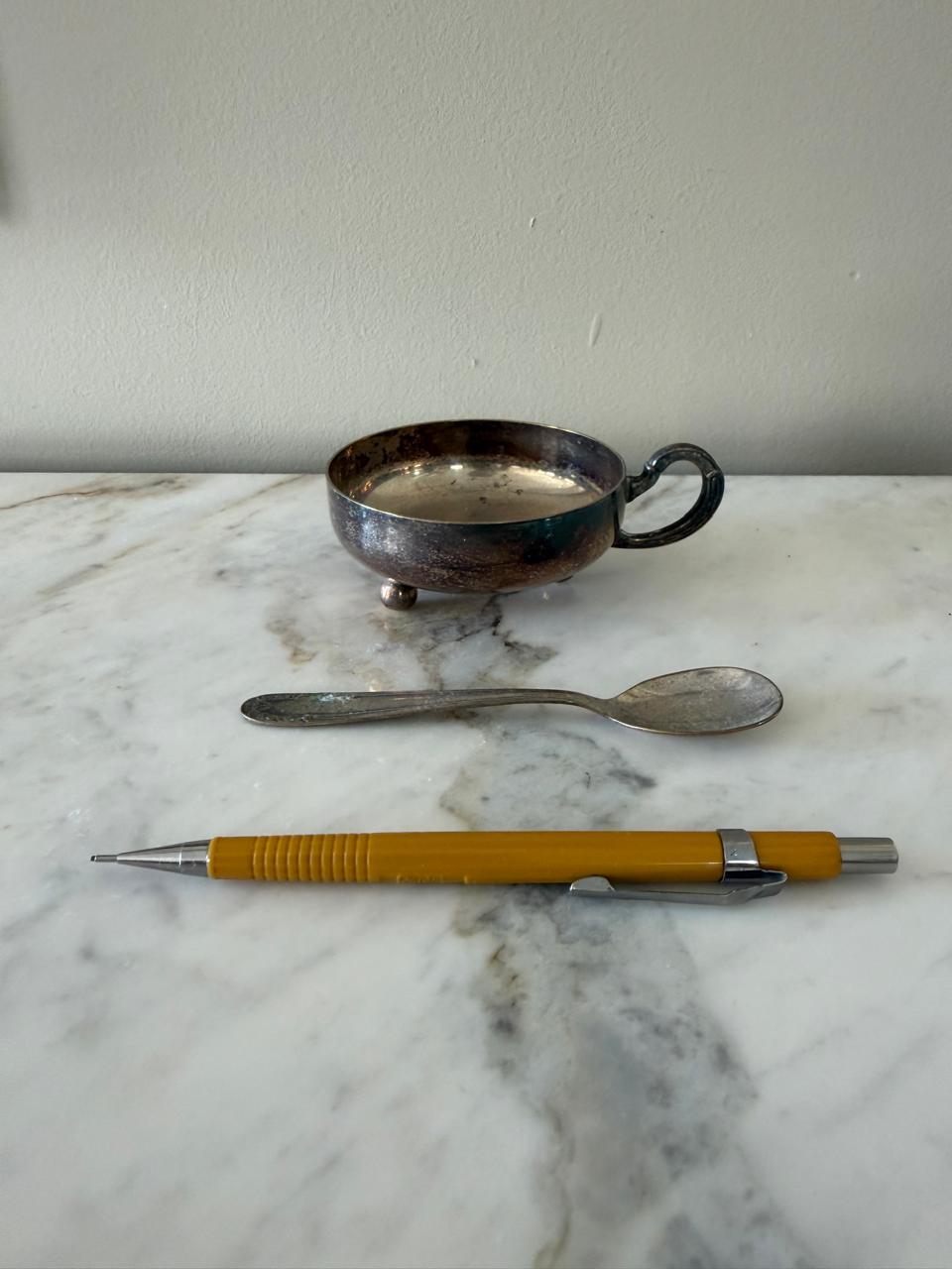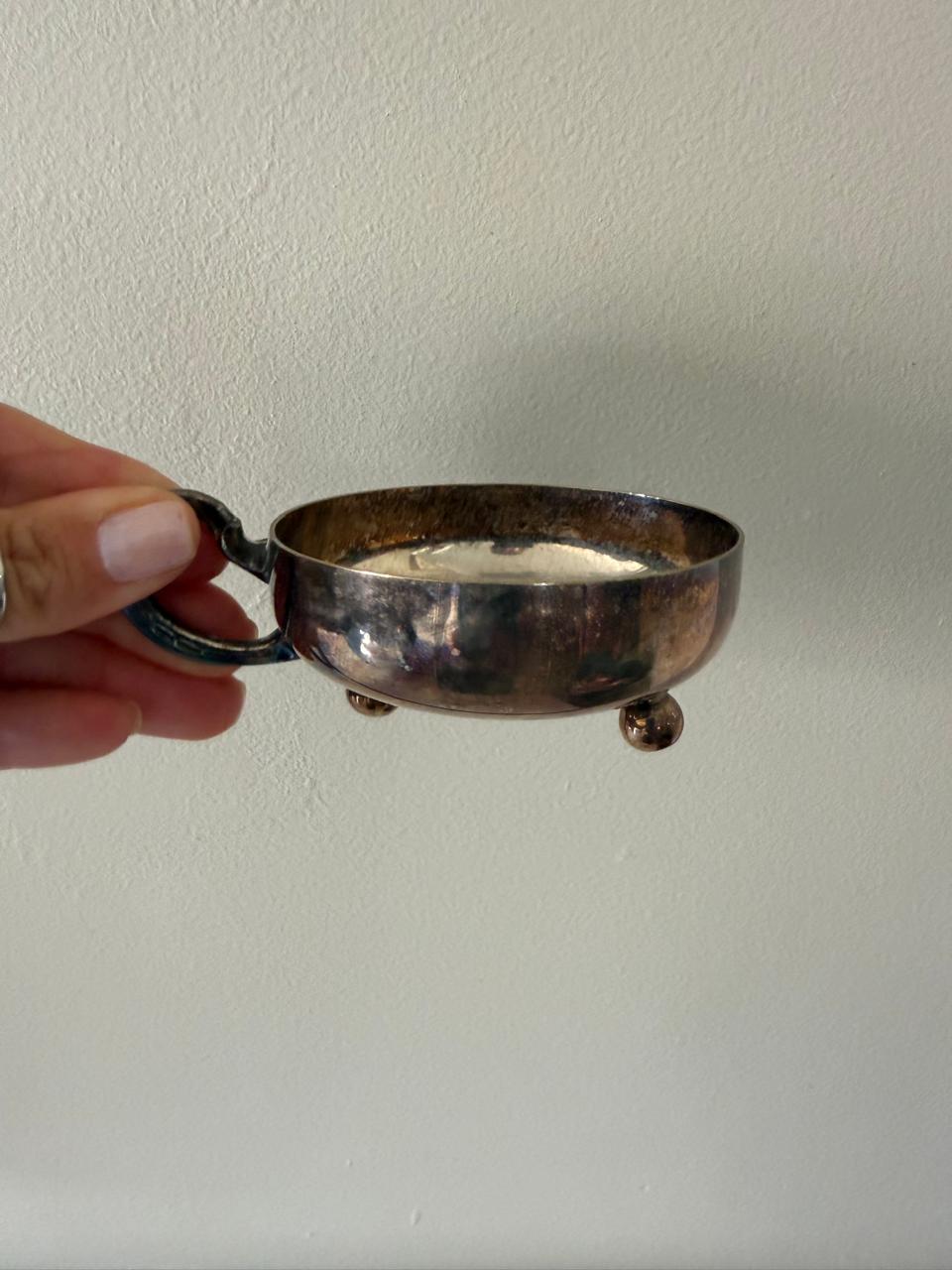 LOTE ÚNICO – 6 CONSOMÊS PRATA – COM ALÇA + 6 COLHERES – PEÇAS ANTIGAS — V050.06