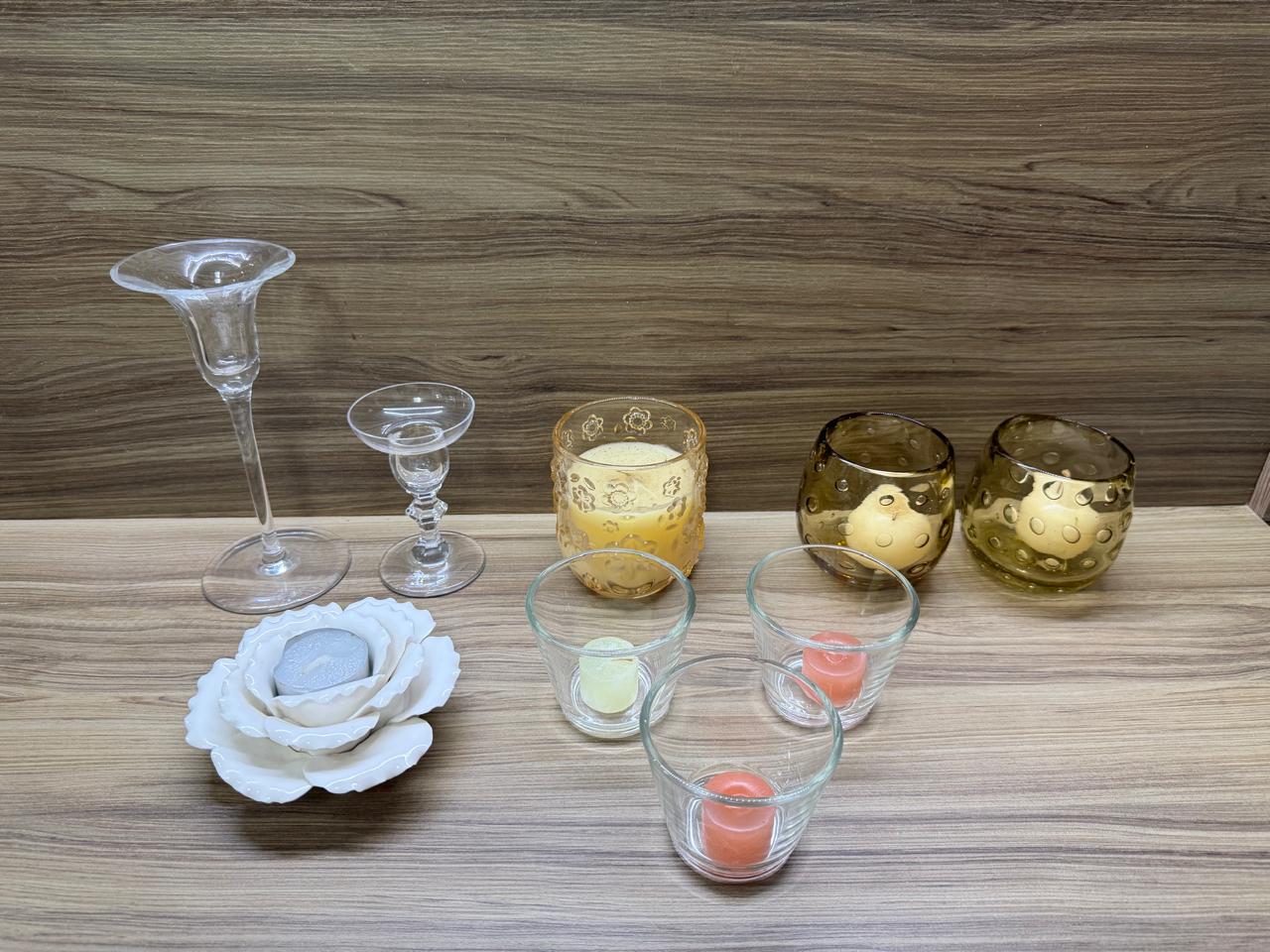LOTE ÚNICO – CASTIÇAIS VARIADOS – VIDRO, CRISTAL, CERÂMICA — I016.706