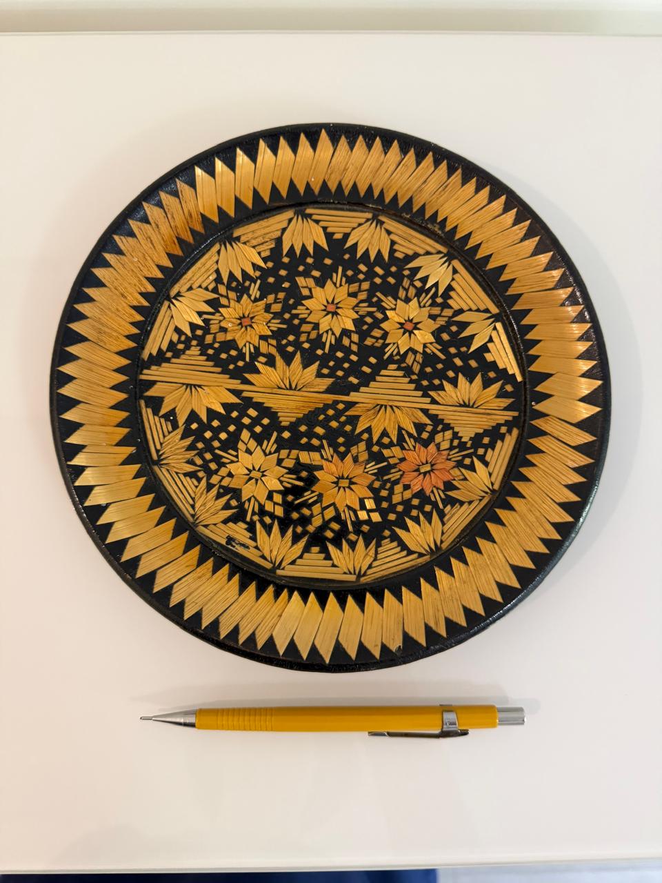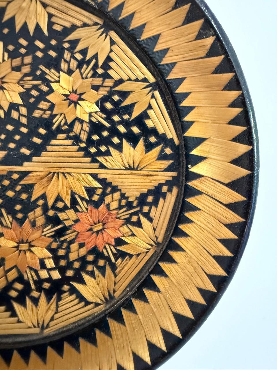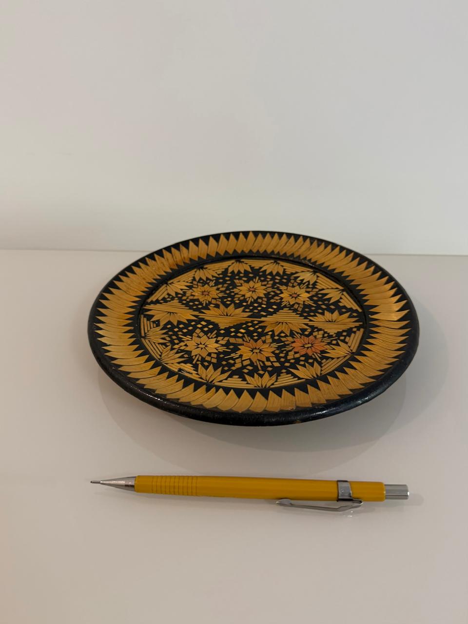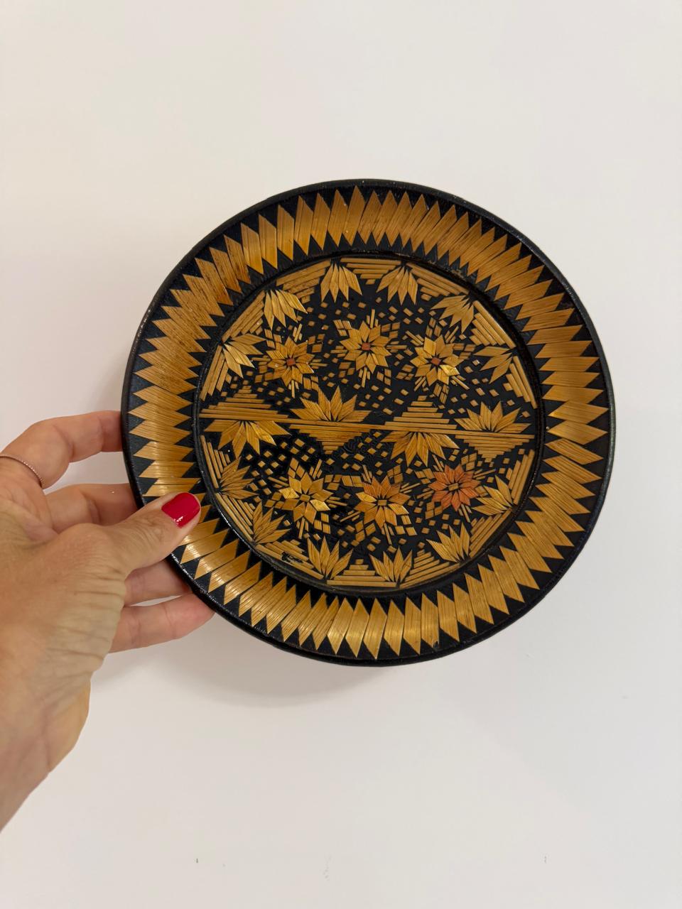 – Prato de madeira decorativo LINDO com trabalho em palha – 20 cm (D)