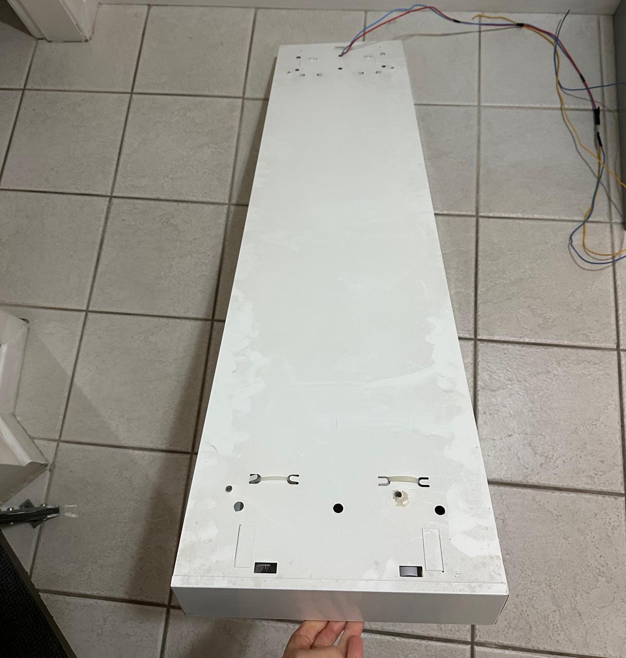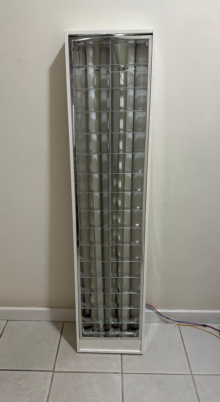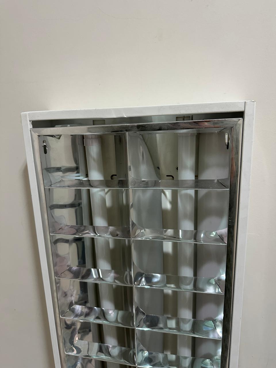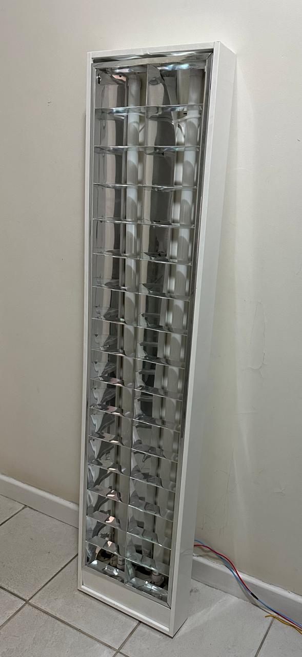 LUMINÁRIA CALHA — RETANGULAR — ESTILO COMERCIAL — DUAS LÂMPADAS TUBULARES — TIPO DE SOBREPOR — BRANCAS — SÃO 5 UNIDADES — JÁ DESINSTALADAS — Valor por peça — R081.01