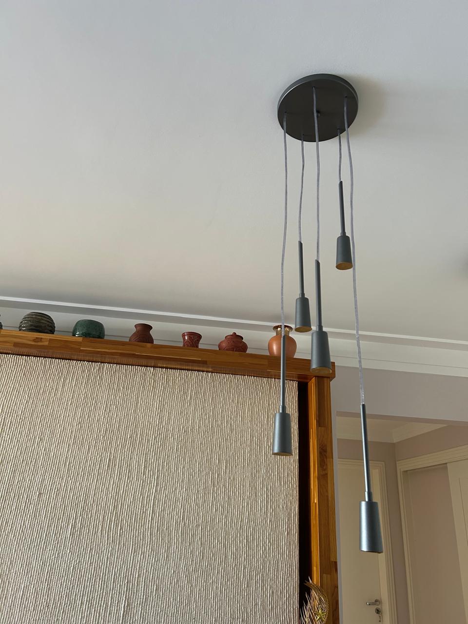 LUMINÁRIA PENDENTE – METAL – COR CHUMBO – 5 PINGENTES — M140.04