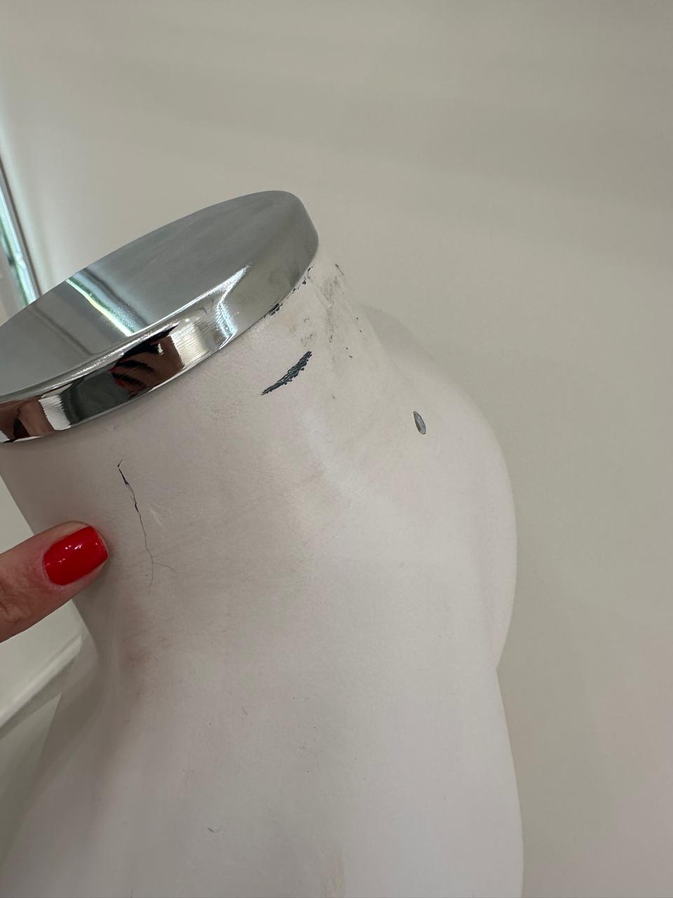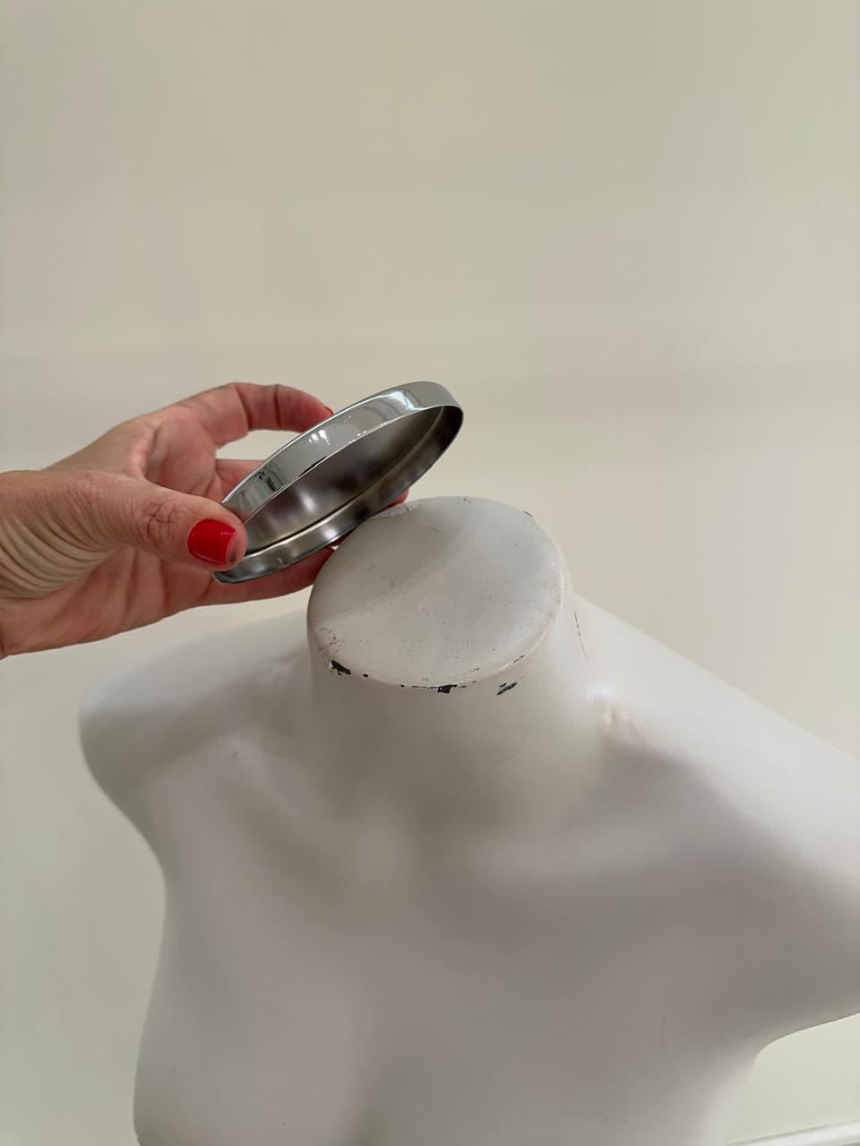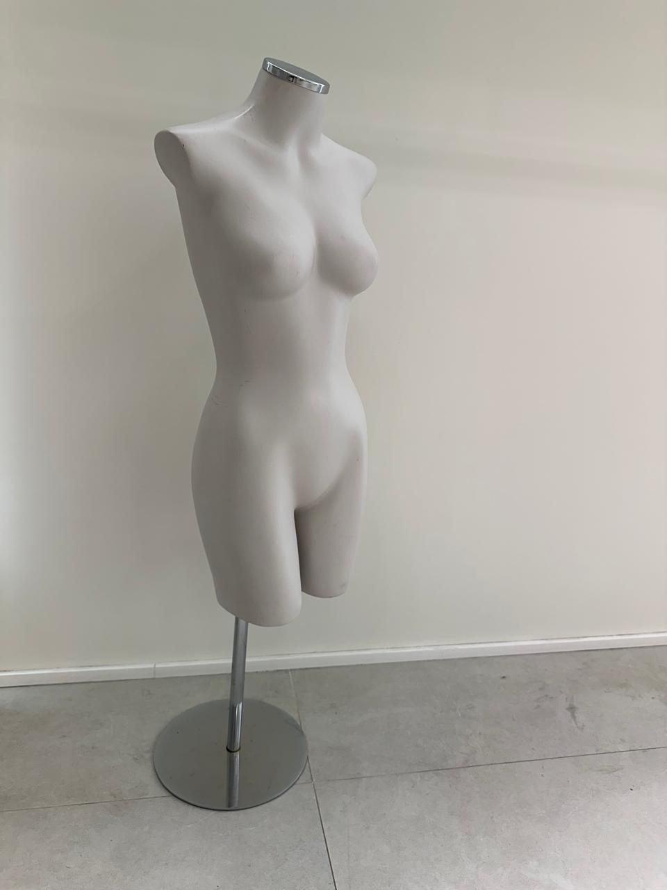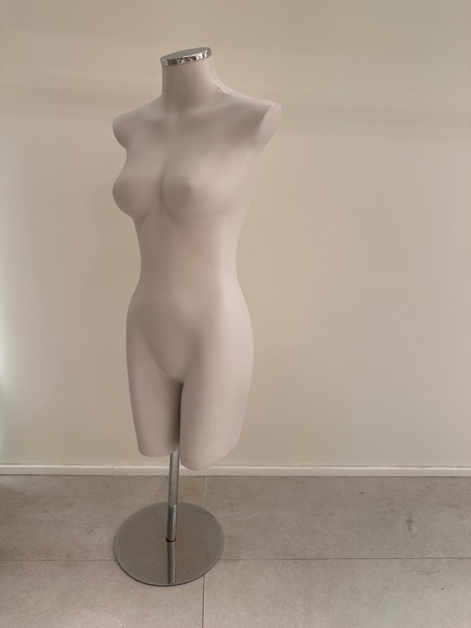 MANEQUIM — MEIO CORPO SEM CABEÇA — FIBRA LAQUEADA — BASE CROMADA REDONDA — M128.14