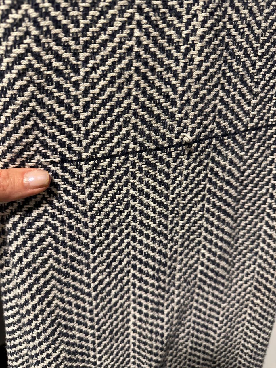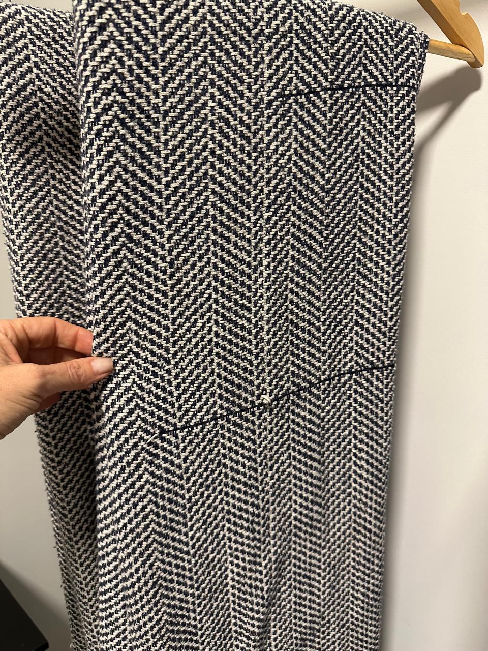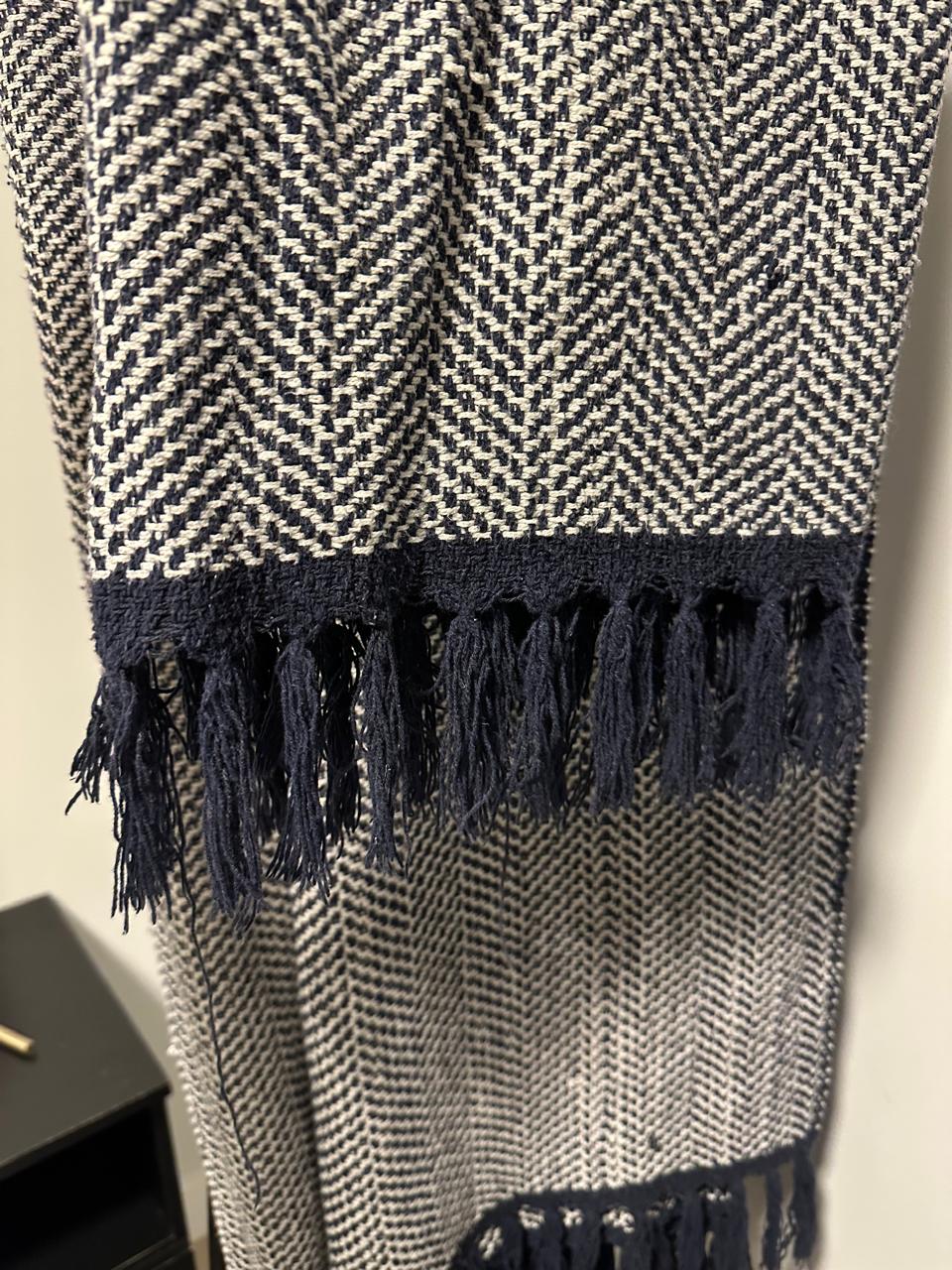 MANTA DE ALGODÃO – PARA SOFÁ OU PÉ DE CAMA – TOK STOK – CORES CRU E AZUL MARINHO MARCAS DE USO – GOSTOSA E FOFA – SÓ PRECISA LAVAR — L086.09