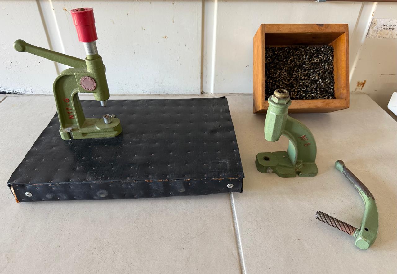 MÁQUINA DE ILHÓS MANUAL – ALAVANCA SOBRESSALENTE + INSUMOS PARA FECHAMENTO EMBALAGEM — Y004.04