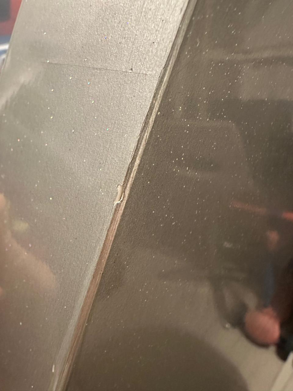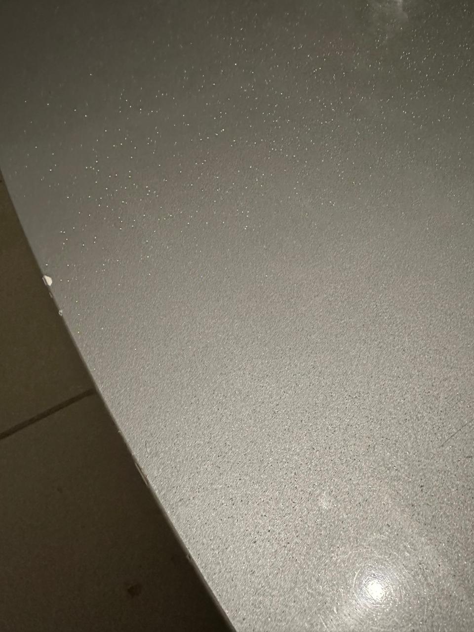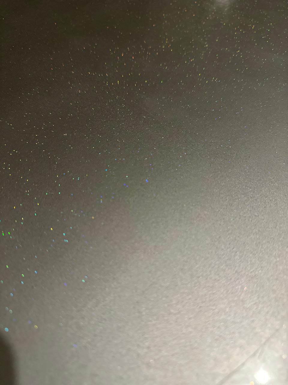 A cor dela é cinza prateado, com um cintilante purpurina como céu estrelado bem miudinho