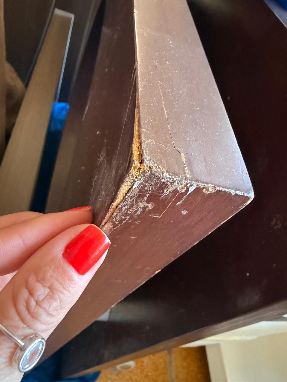 Ela está com um detalhe em um dos cantos, destaque na foto