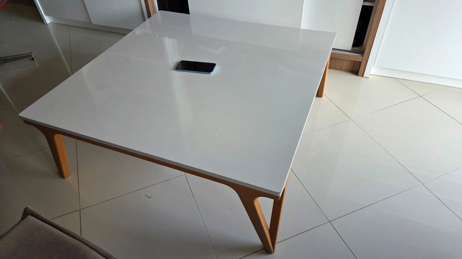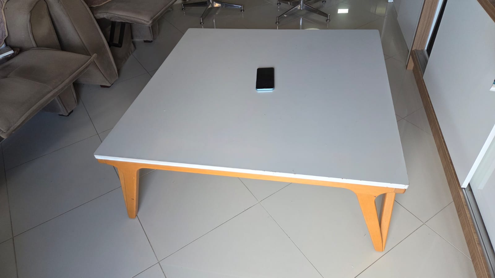 MESA DE CENTRO – PÉS MADEIRA – TAMPO AGLOMERADO LAMINADO – OFF WHITE — V050.02