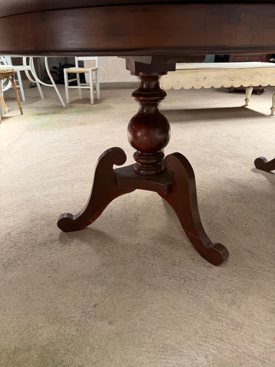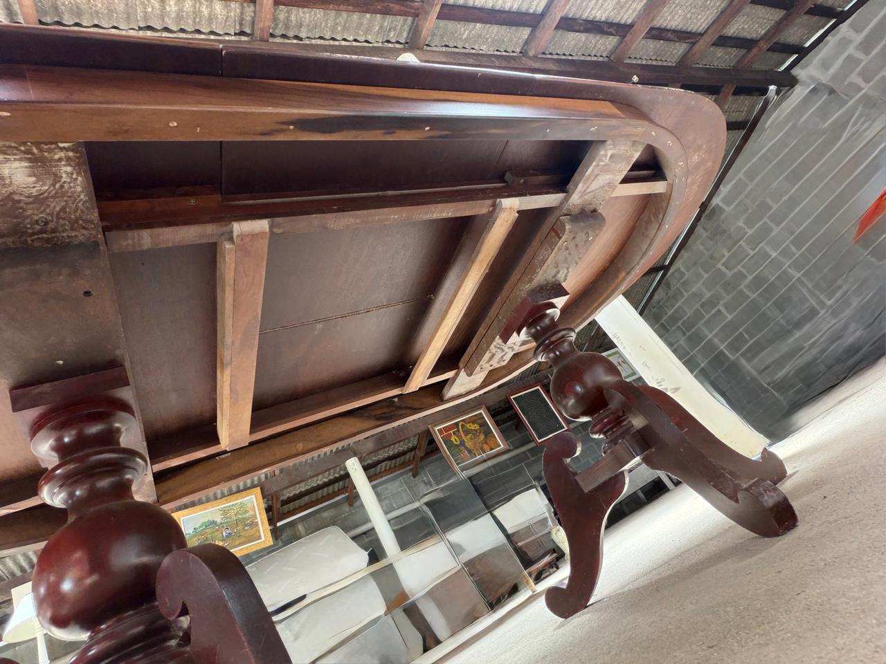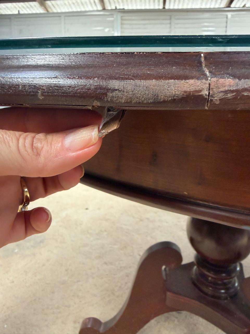 MESA DE JANTAR – GRANDE – COM EXPANSOR – SOBRETAMPO DE VIDRO – EXTREMIDADES ARREDONDADAS – 2 PÉS TORNEADOS – LÂMINA NO TAMPO — L079.104