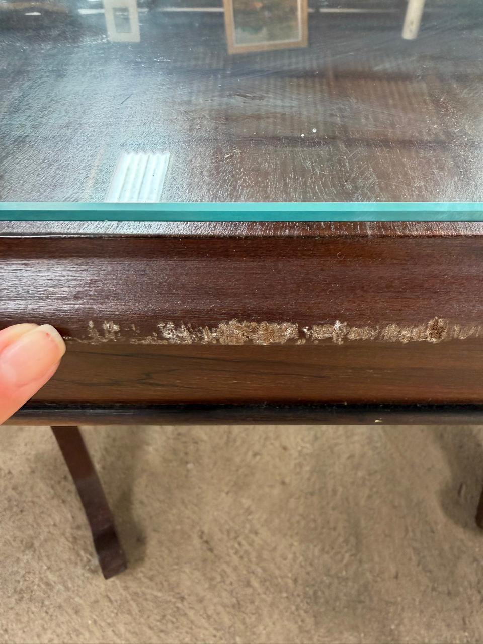 O tampo de vidro sobreposto foi feito para o tamanho maior