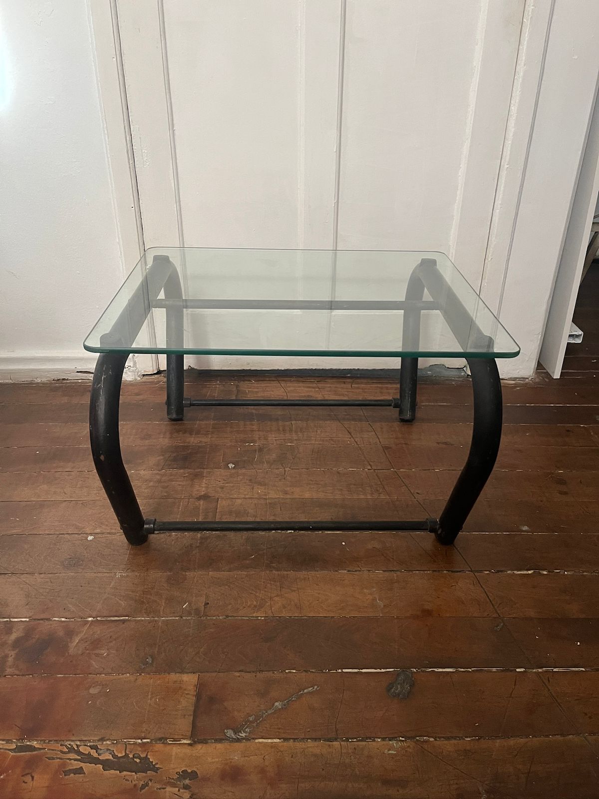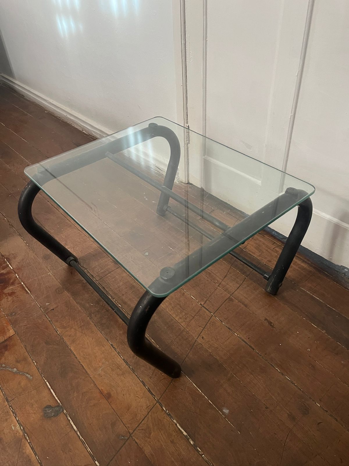 MESINHA LATERAL – ANOS 1980 – FERRO TUBULAR PRETINHO + TAMPO VIDRO — L090.04