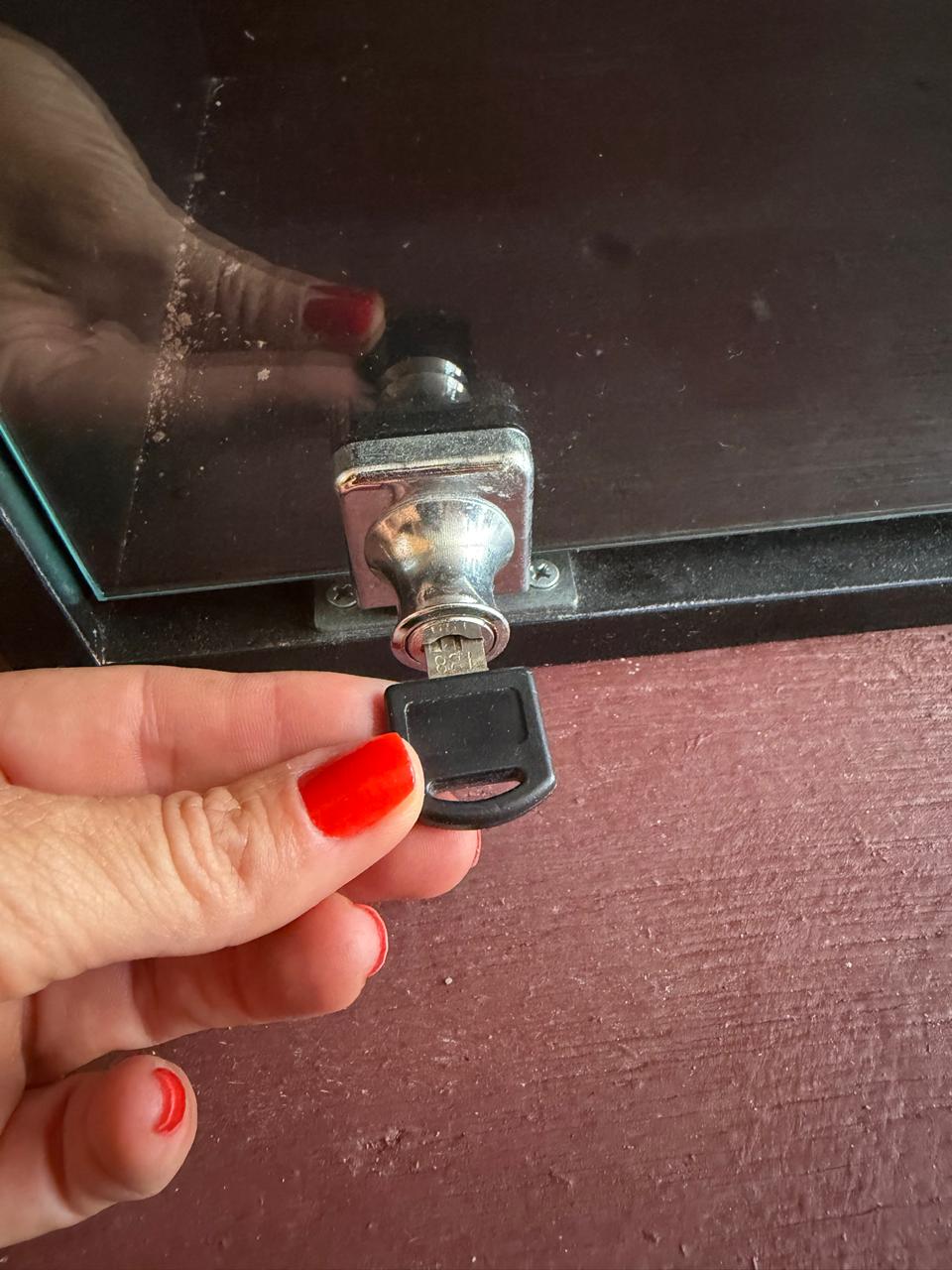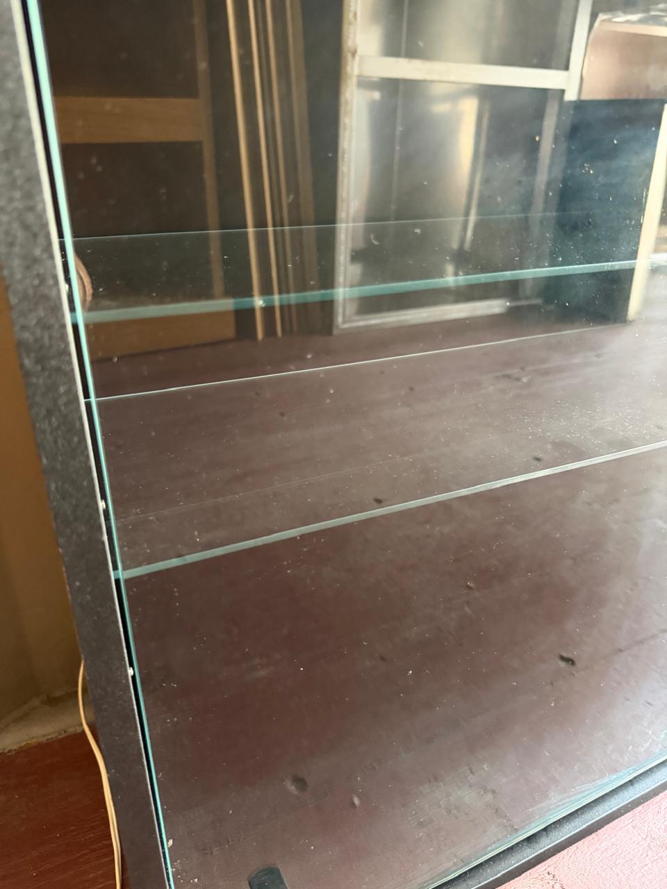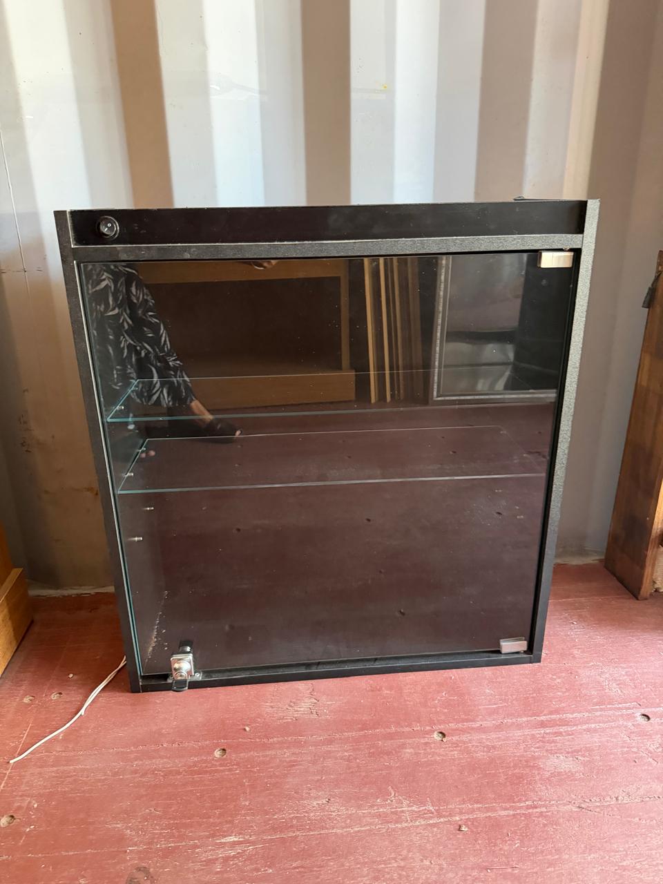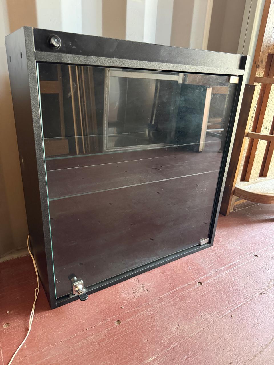 MINI VITRINE PRETINHA – MDF – PORTA DE VIDRO COM CHAVE – ILUMINAÇÃO — R095.34