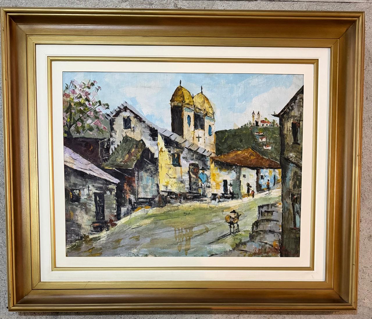 ÓLEO SOBRE TELA – ARTISTA PLÁSTICO DURVAL PEREIRA – OBRA “IGREJAS EM OURO PRETO” – ANOS 1970 — R003.450