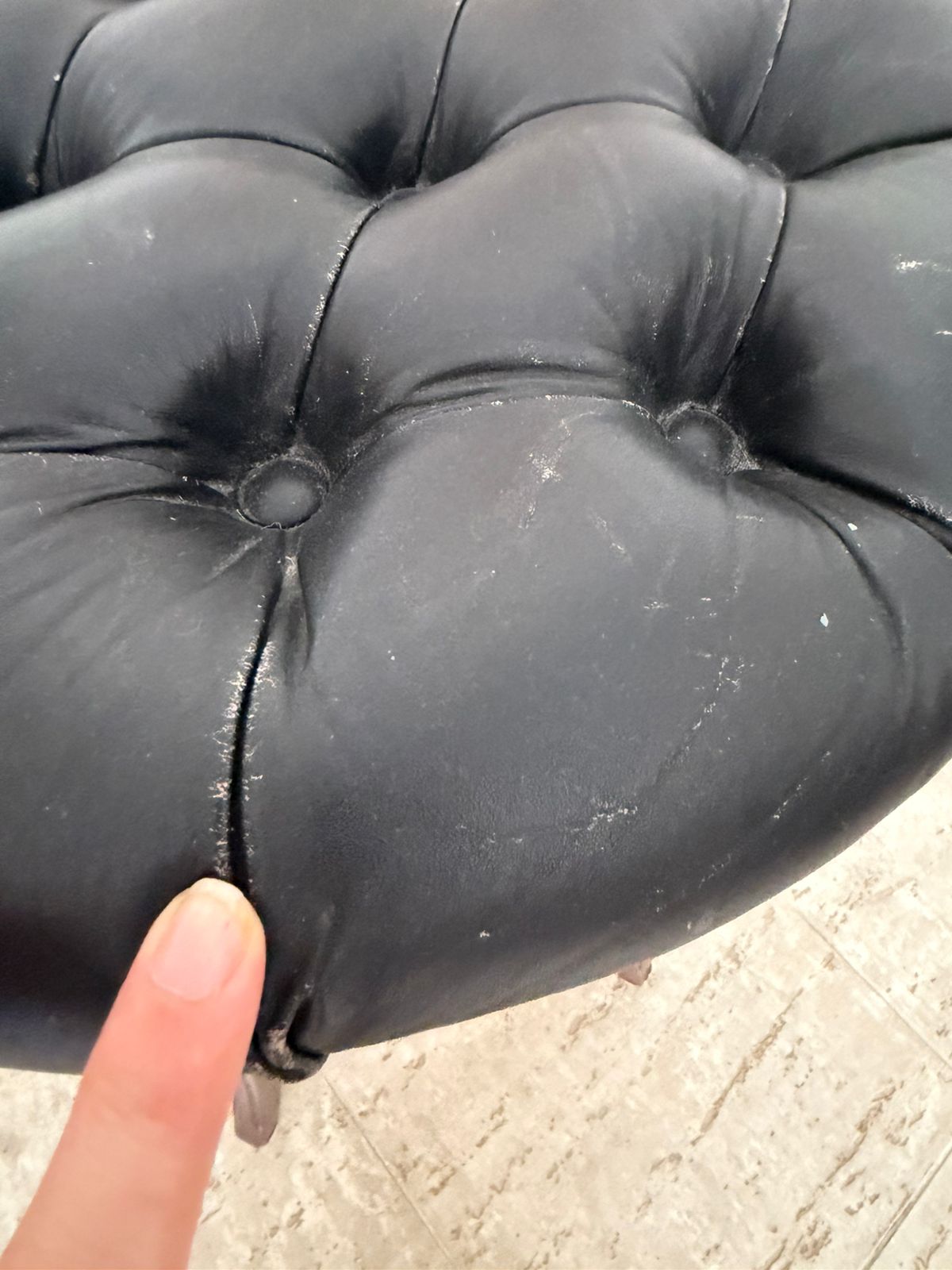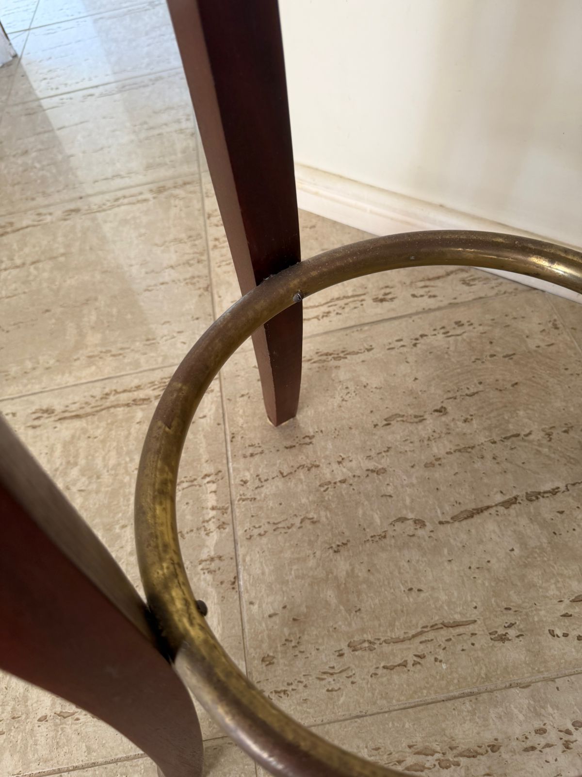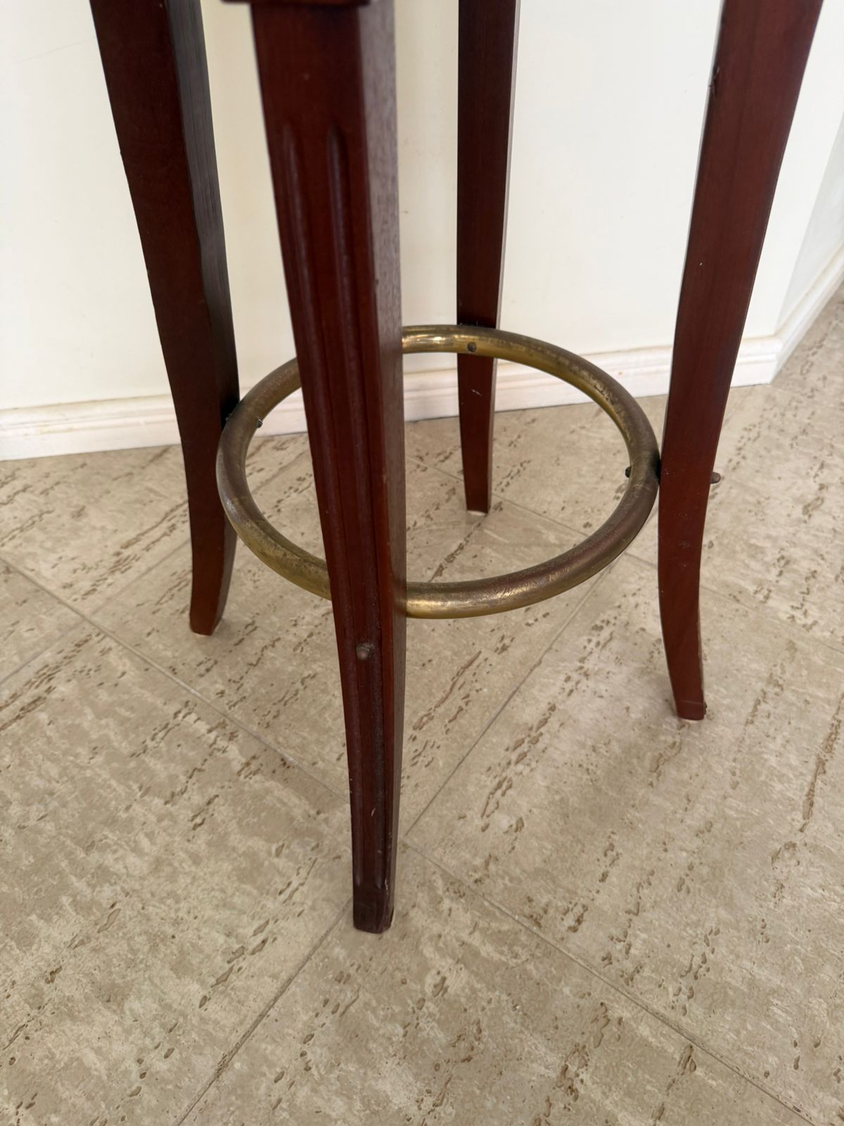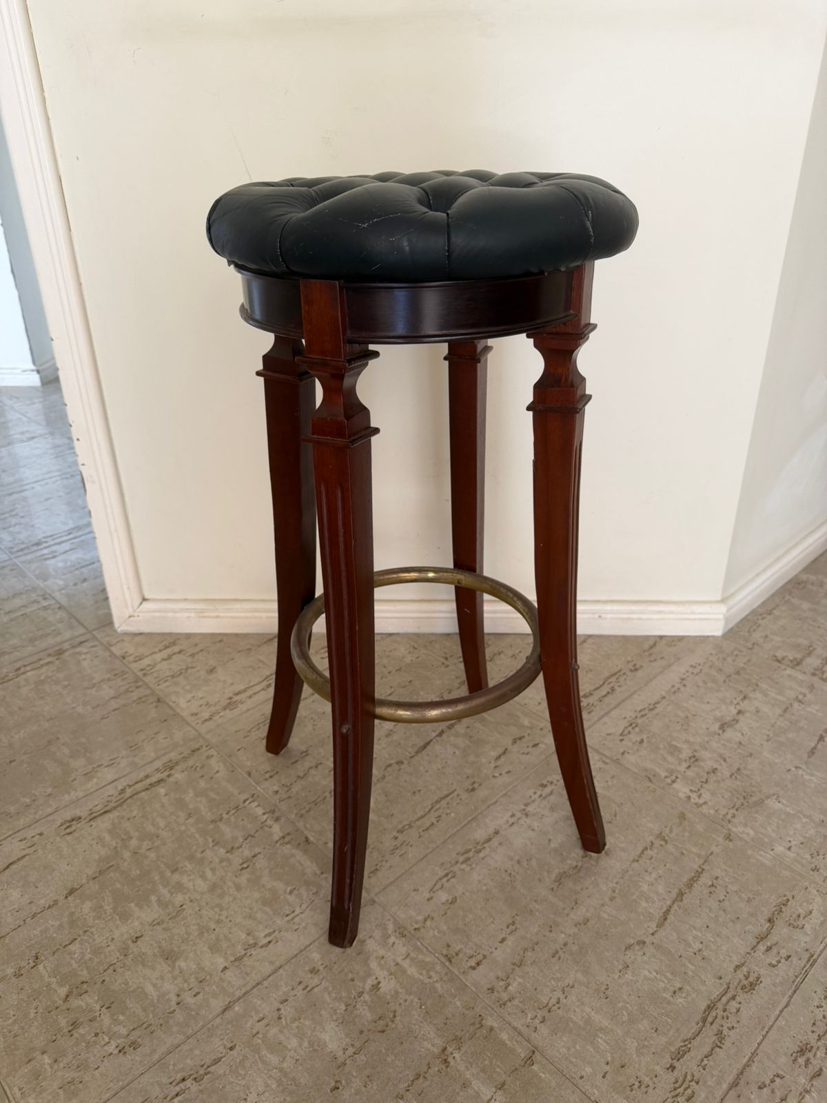 Os tampos são giratórios em capitonê em couro preto – parecem um pouco desgastado – mas é o estilo mesmo