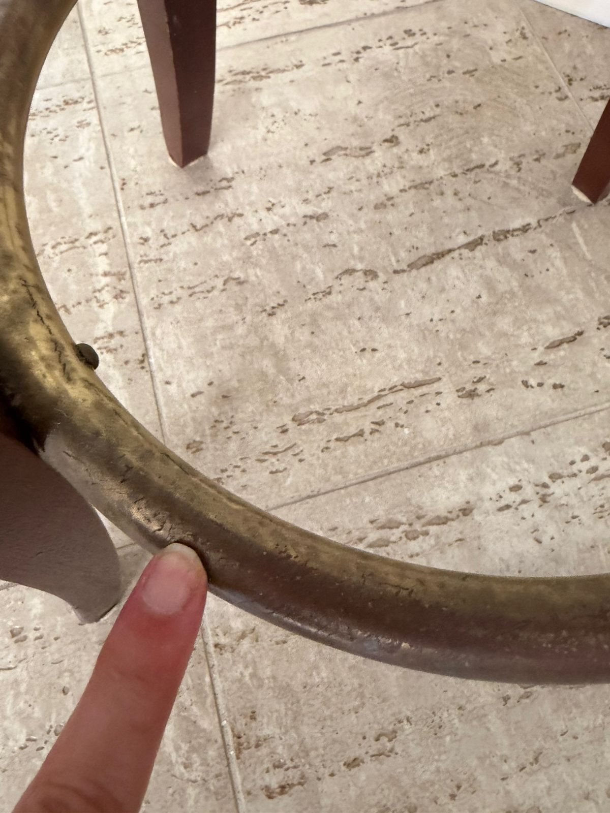 A estrutura é em madeira e com um arremate em metal para colocar os pés