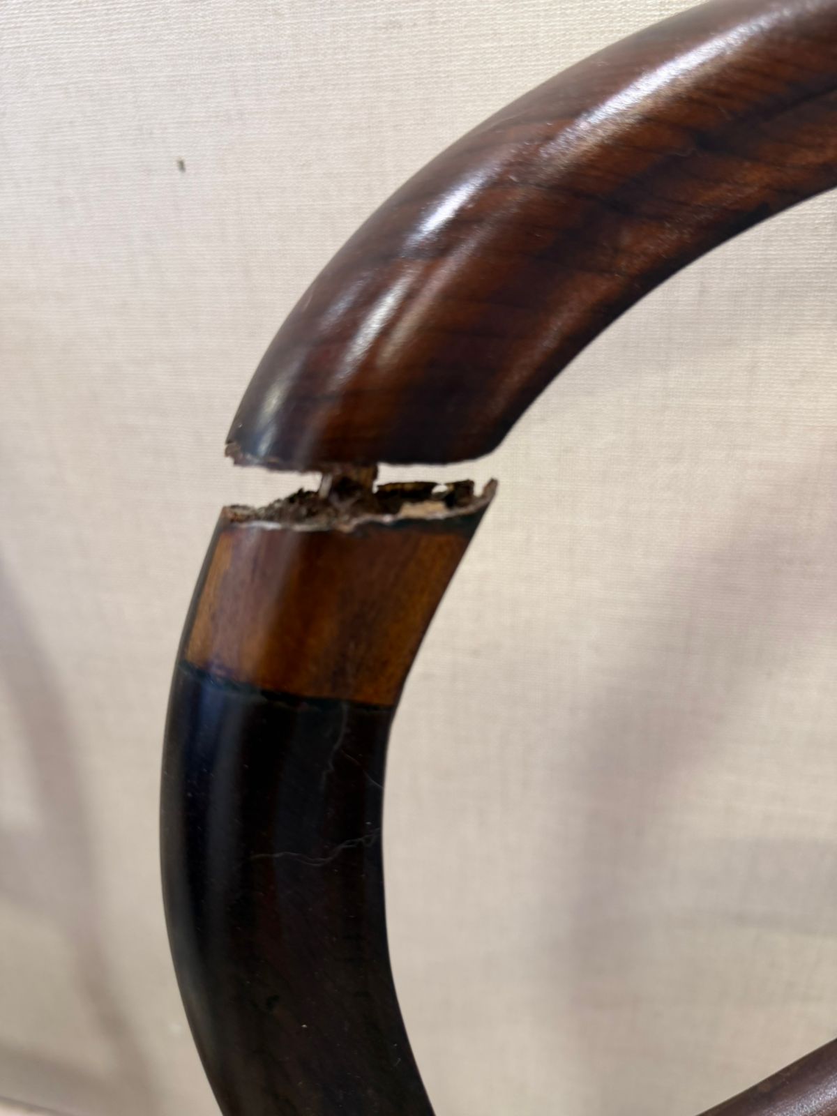 Uma delas está com o encosto com uma madeira solta – mas é bem fácil resolver com um carpinteiro especializado