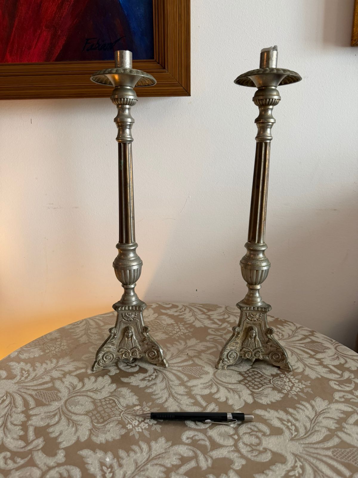 PAR DE CASTIÇÁIS EM METAL – PRATA – ANTIGOS – ARTE SACRA— J067.05