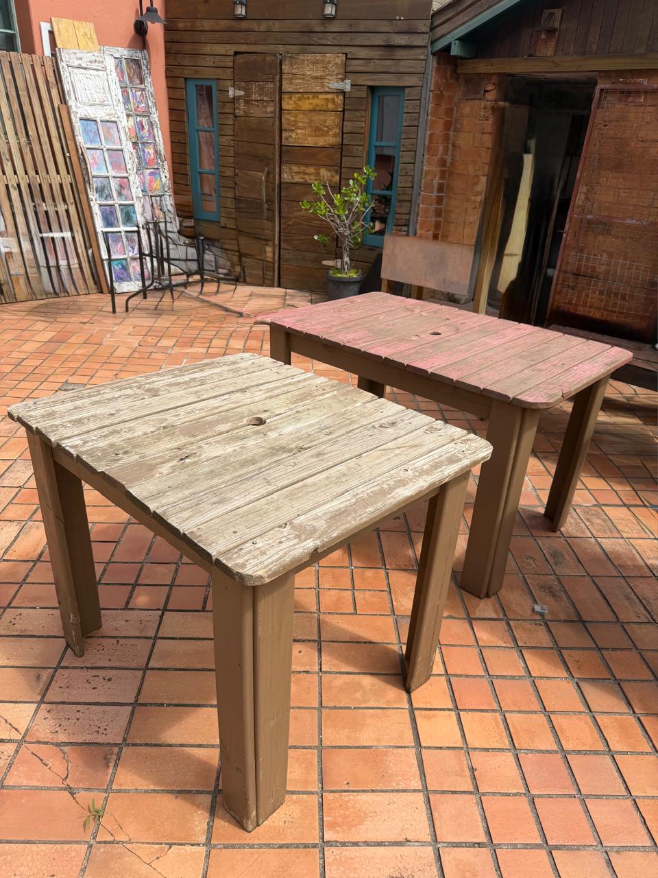 PAR DE MESAS MADEIRA – PINUS TRATADO – COM FURO CENTRAL PARA GUARDA-SOL — M071.24