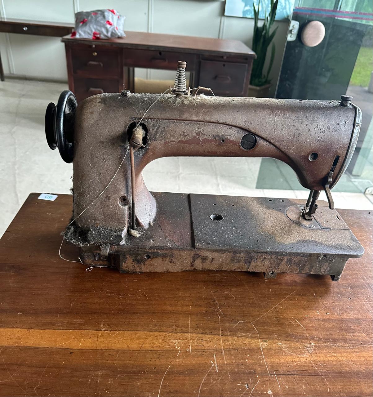 PARA OS COLECIONADORES E AMANTES DAS ANTIGUIDADES – MÁQUINA DE COSTURA ANTIGA – SEM BASE – PEÇA HISTÓRICA – TEM ATÉ AS SUJEIRAS DE ÓLEO PARA MOSTRAR A IDADE – PESADA – LINDA PARA DECORAÇÃO — L085.10
