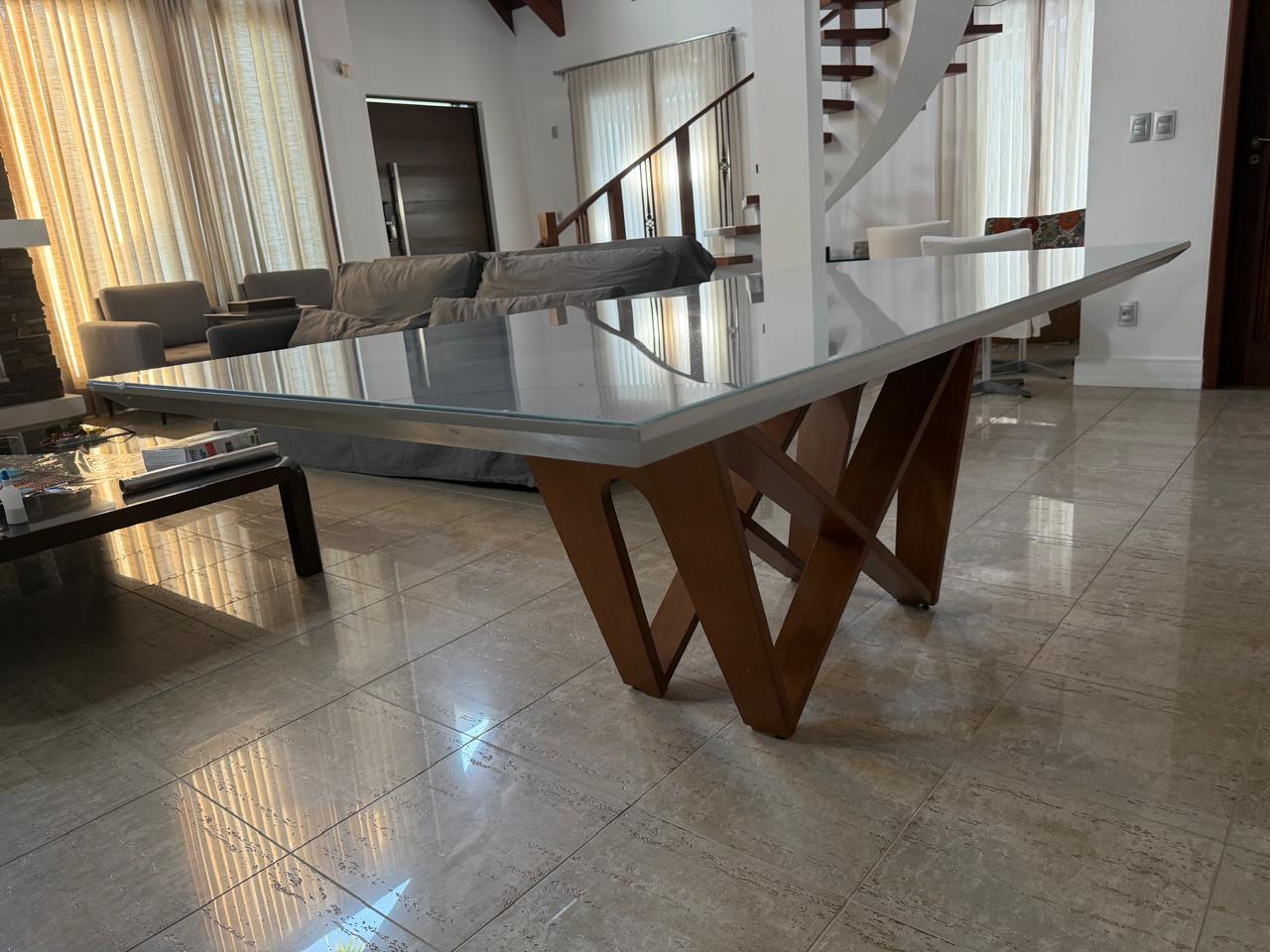 Medidas gerais da mesa: 220 x 77 x 110 cm (L x A x P)