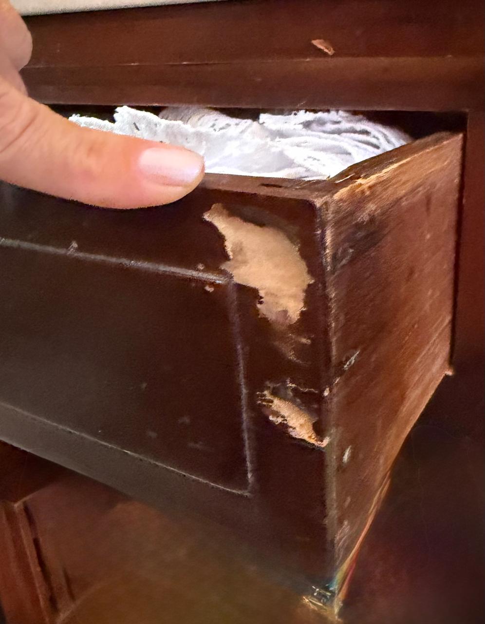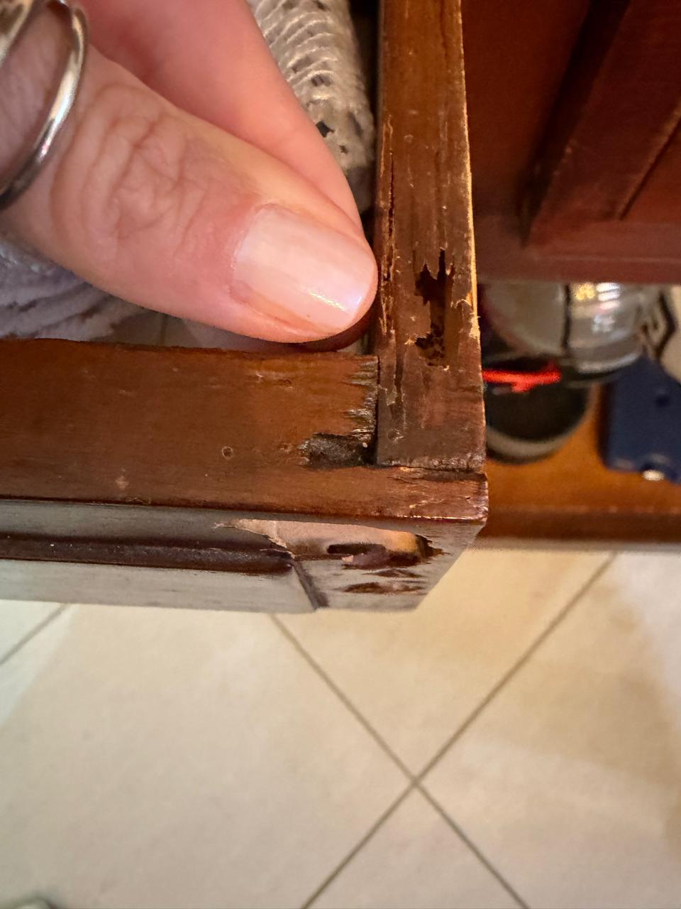 A peça tem cupim, uma das gavetas precisará ser restaurada