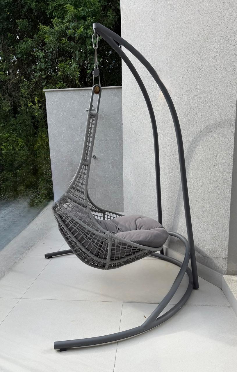 PEÇA ASSINADA ! – ÁREA EXTERNA – BALANÇO “GOTA SUSPENSA” – DESIGNERS LATTOOG – COMPRADO NA STUDIO AMBIENTES – ALUMÍNIO + TECIDO IMPERMEÁVEL + CORDA NÁUTICA + MUITO CONFORTO — M151.01