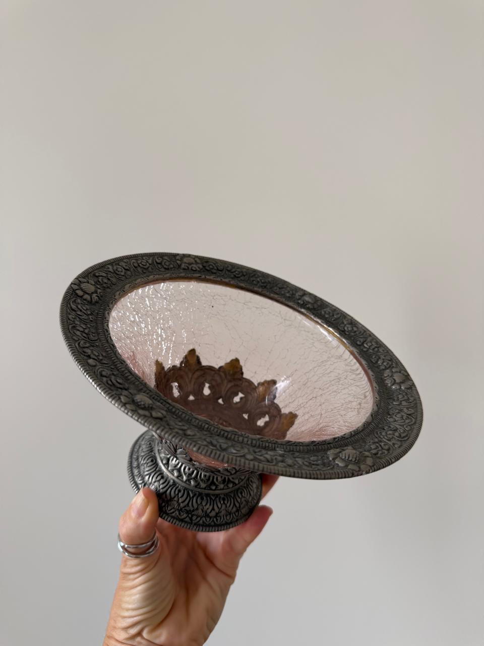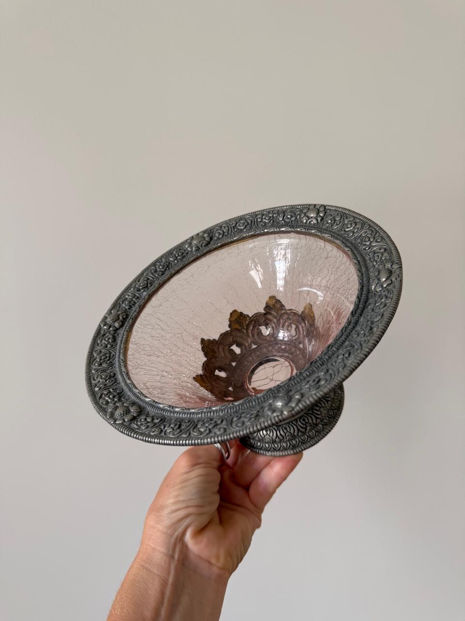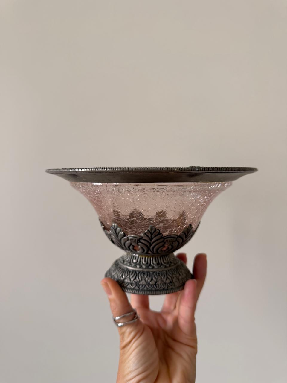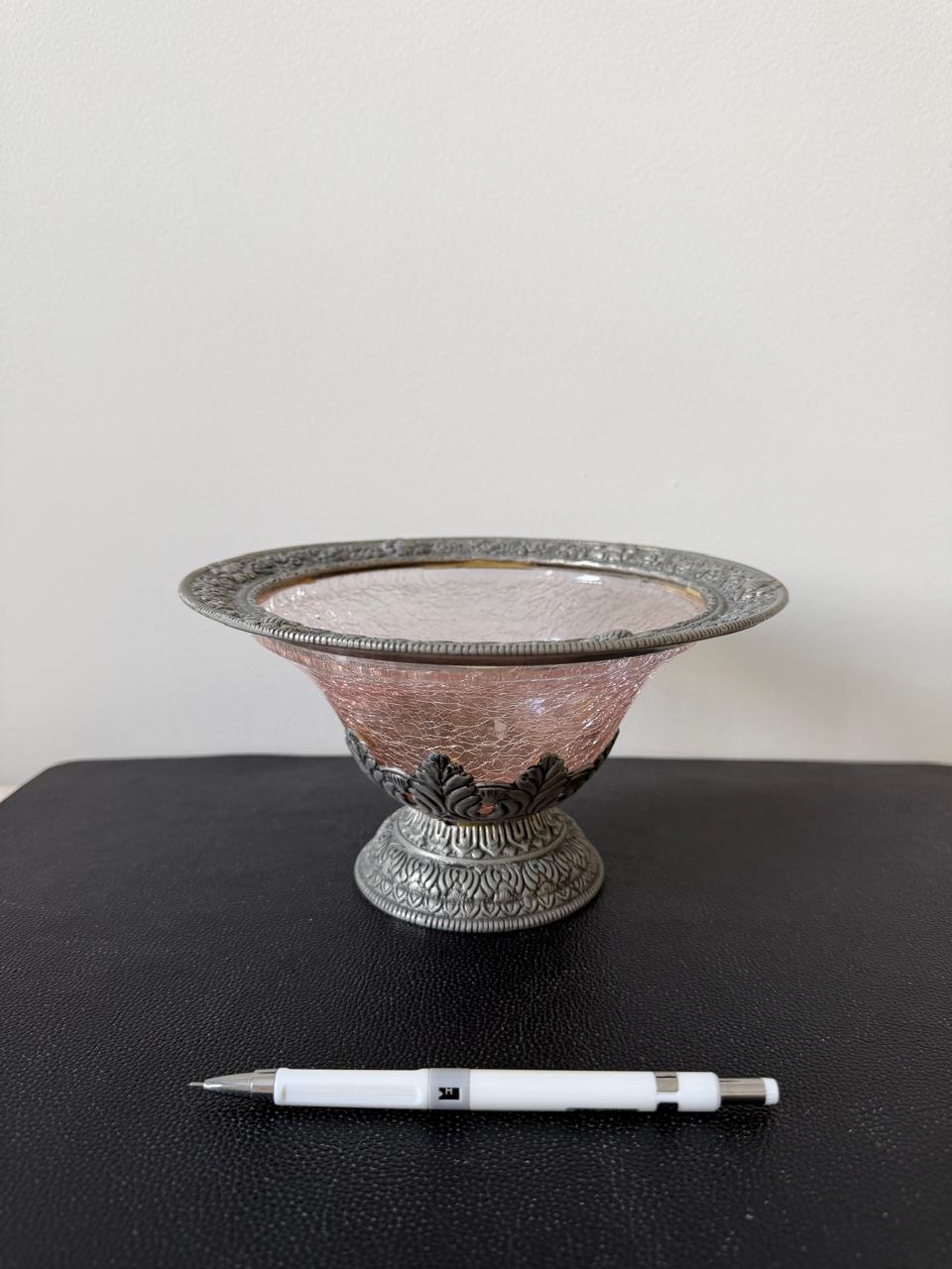 PEÇA DE ANTIQUÁRIO – CONSOLE DE PRATA E VIDRO CRAQUELADO ROSÉ — R003.440