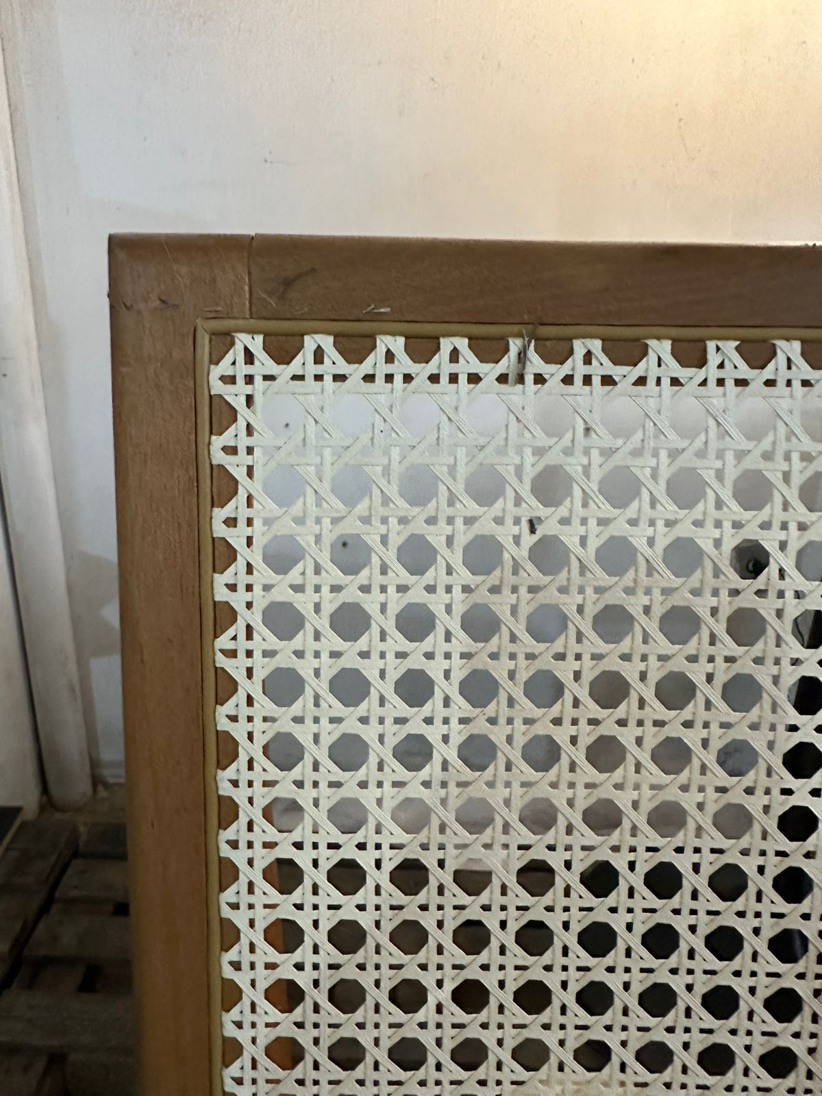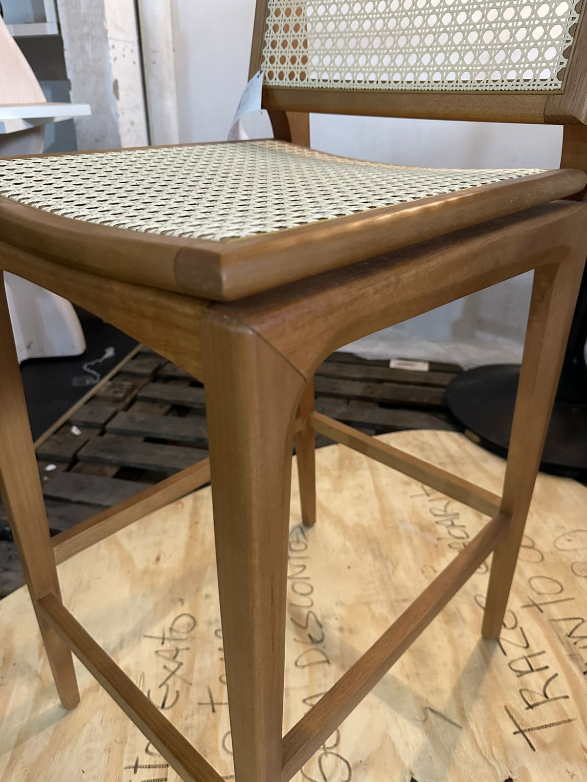 PEÇA ÚNICA – BANQUETA EM MADEIRA COM TELA NO ENCOSTO E NO ASSENTO