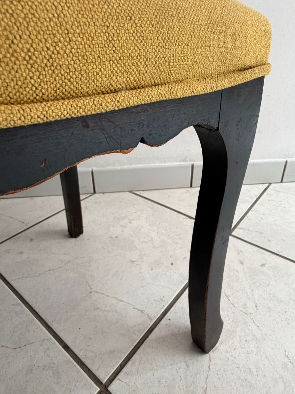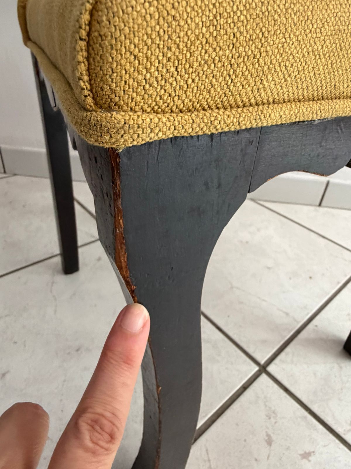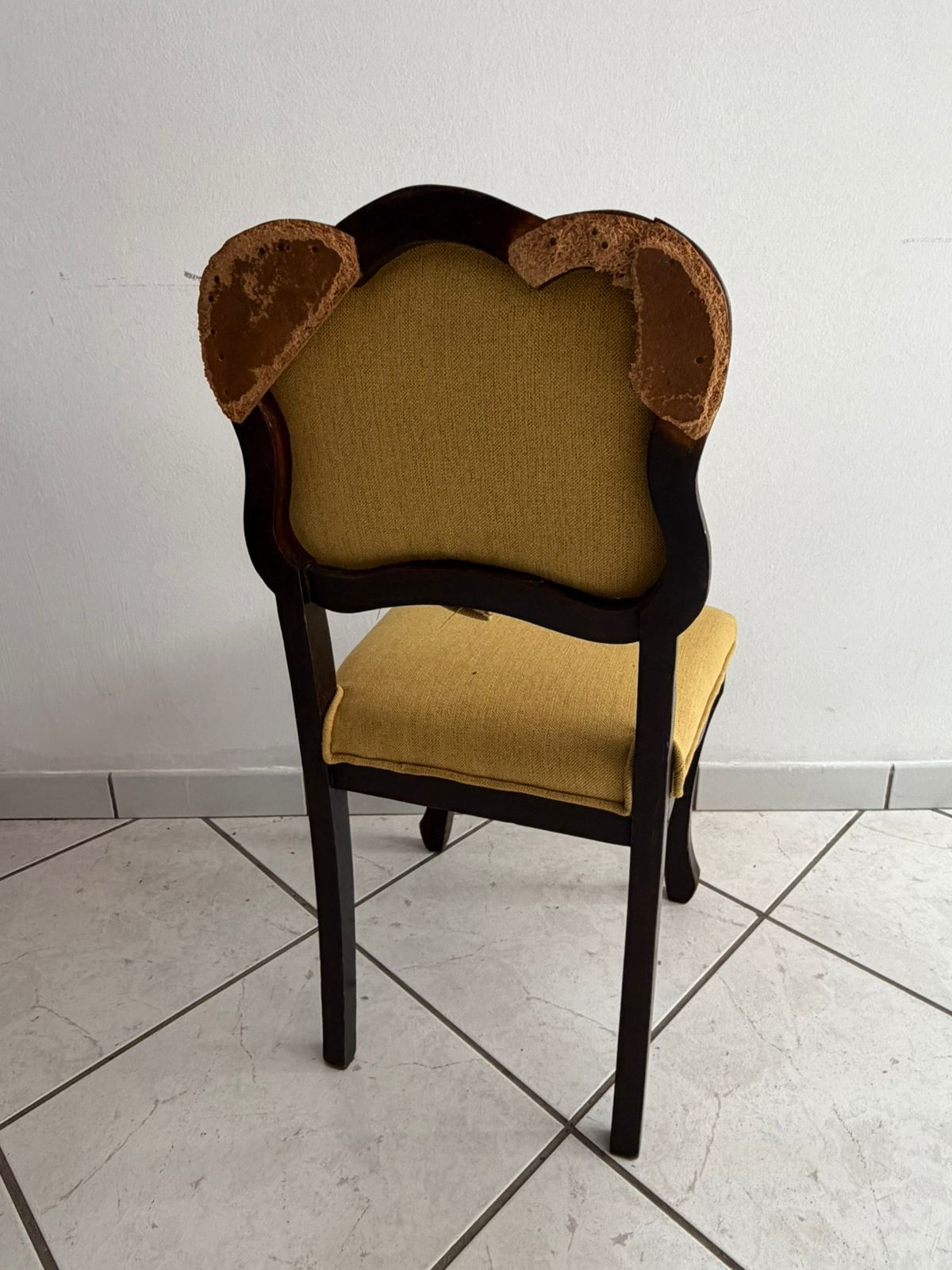 Na parte de trás, é necessário reparar uma parte do encosto que foi feita posteriormente
