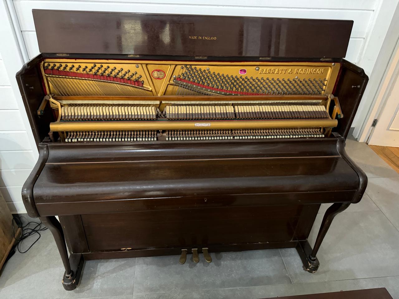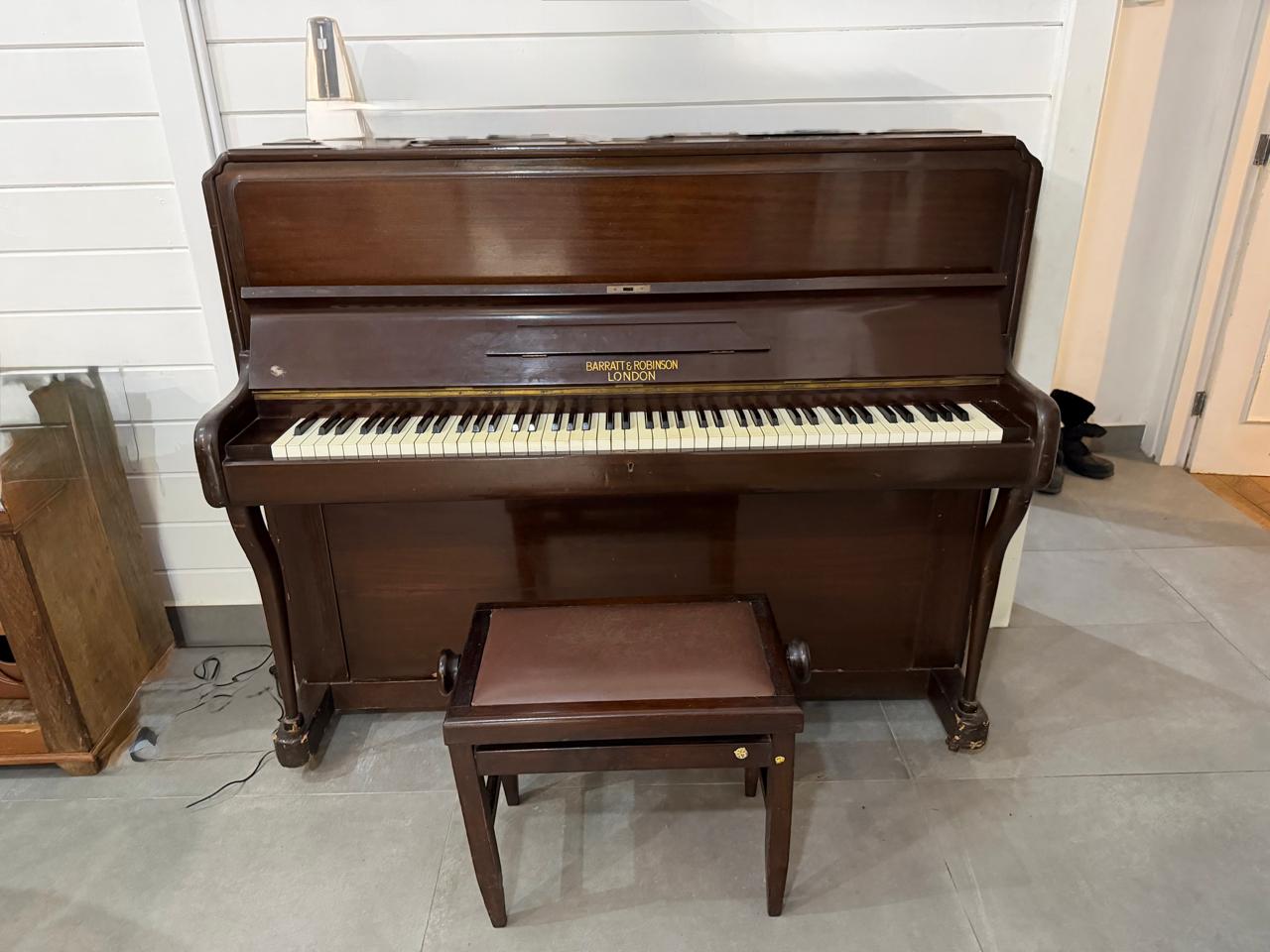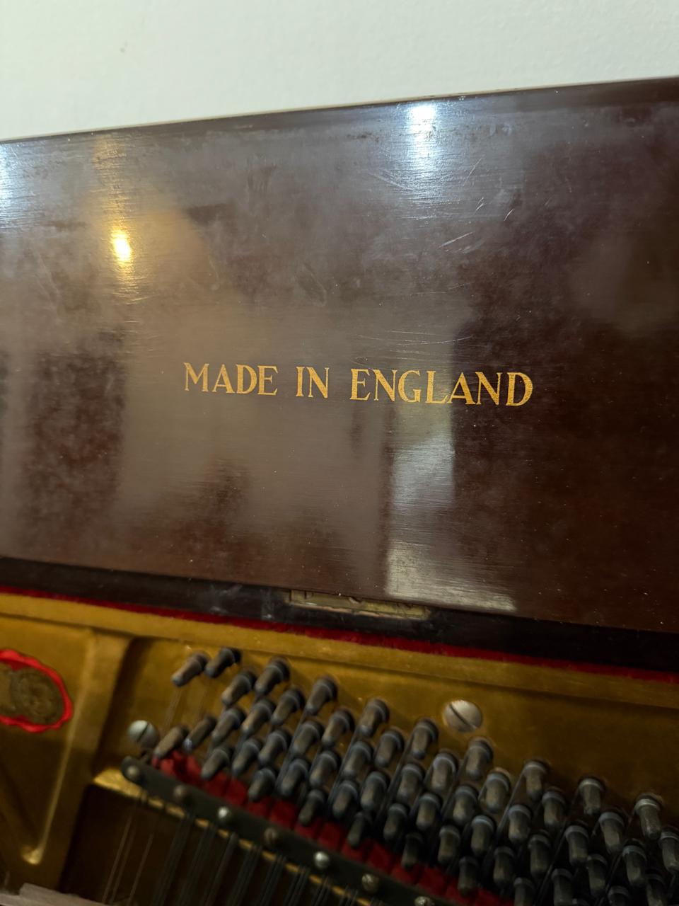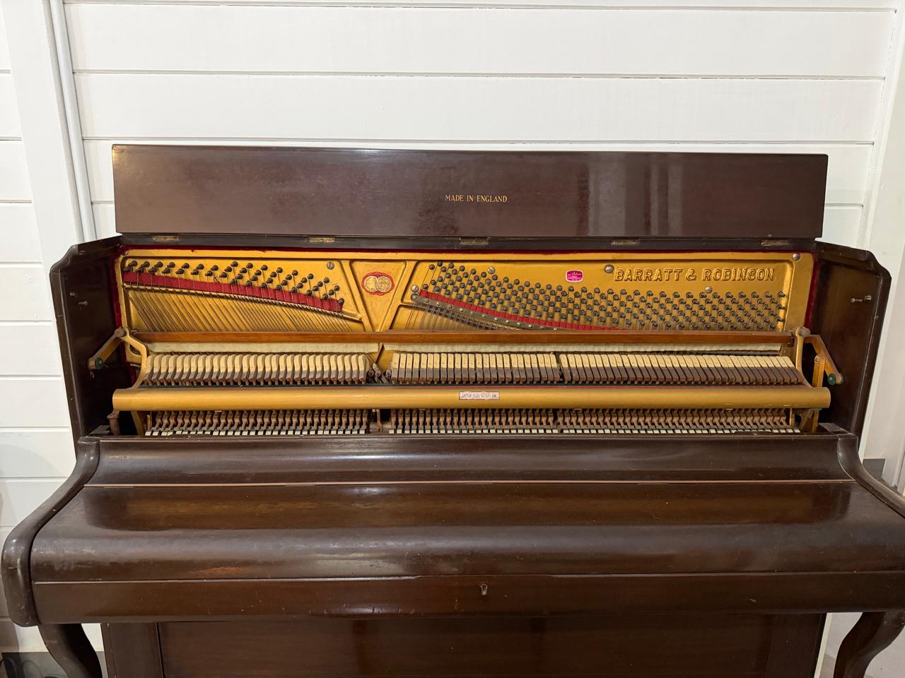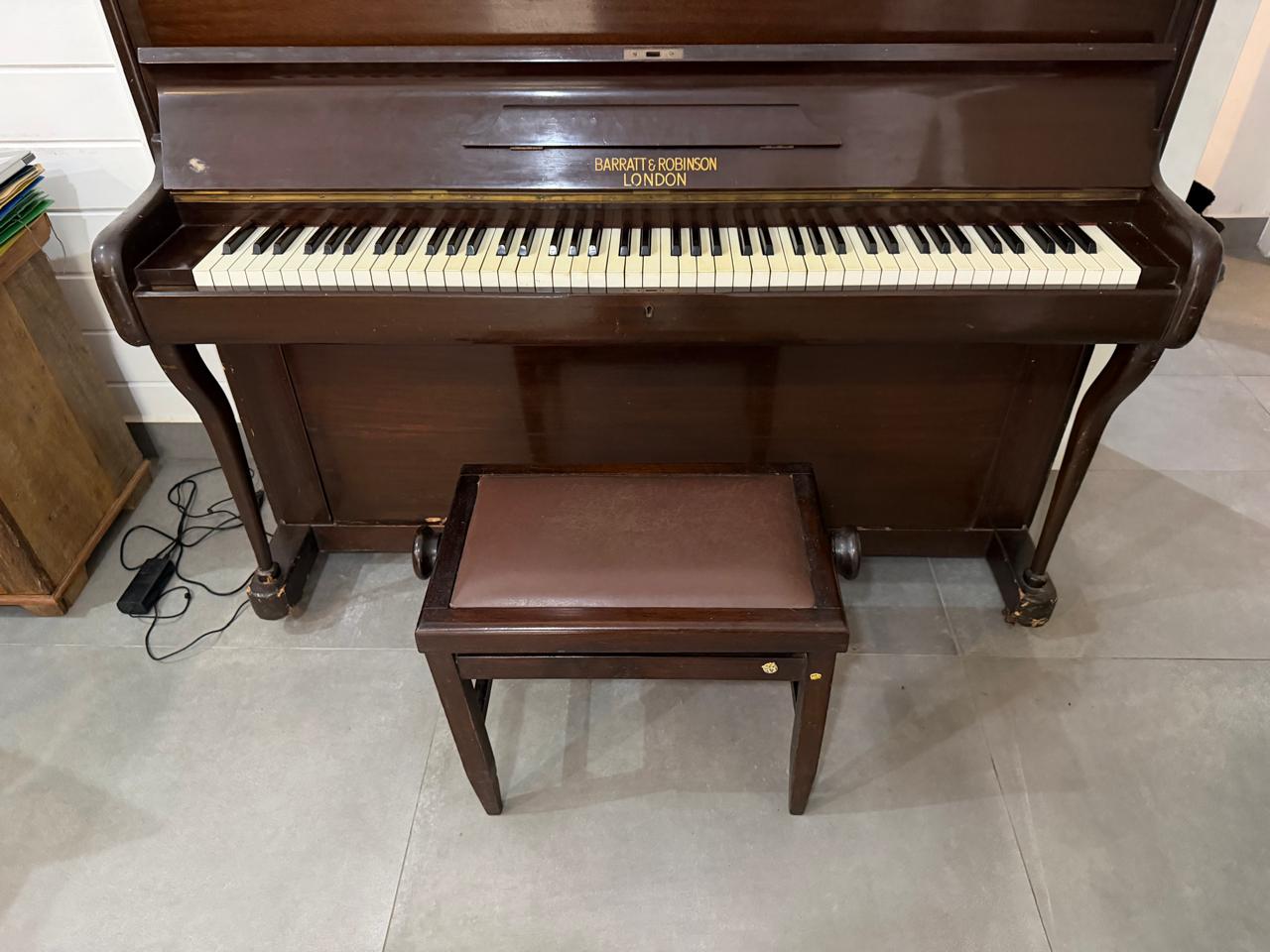 PIANO DE PAREDE – ANOS 1930 – INGLÊS – BARRAT & ROBINSON + BANQUETA + METRÔMETRO MECÂNICO — A134.16