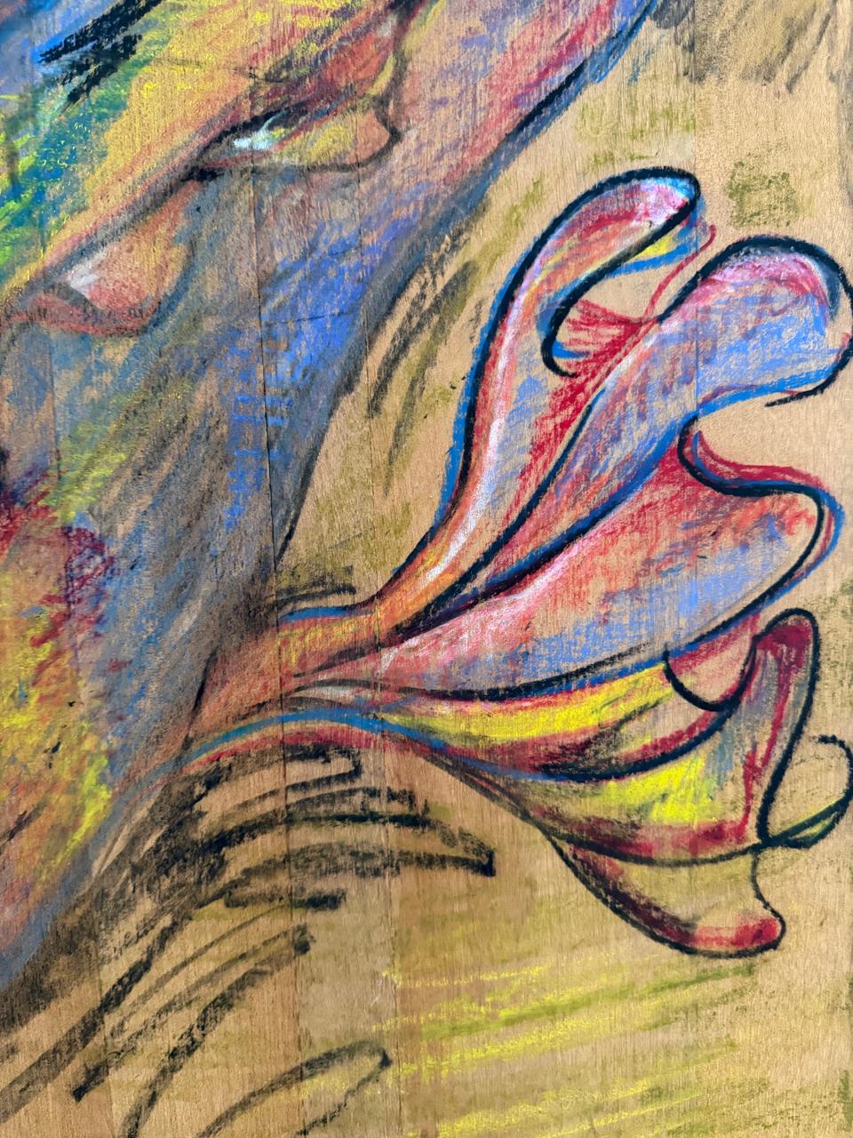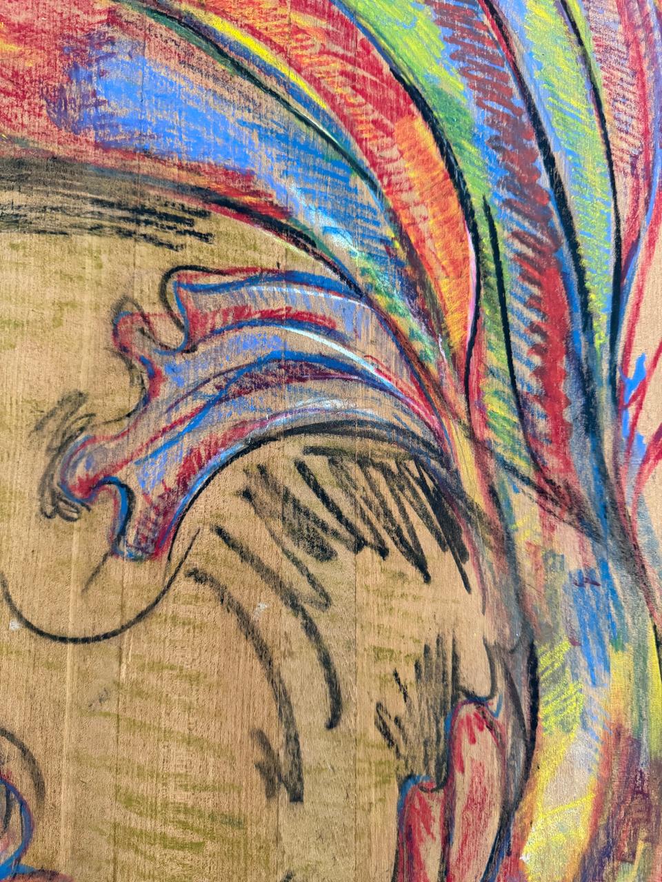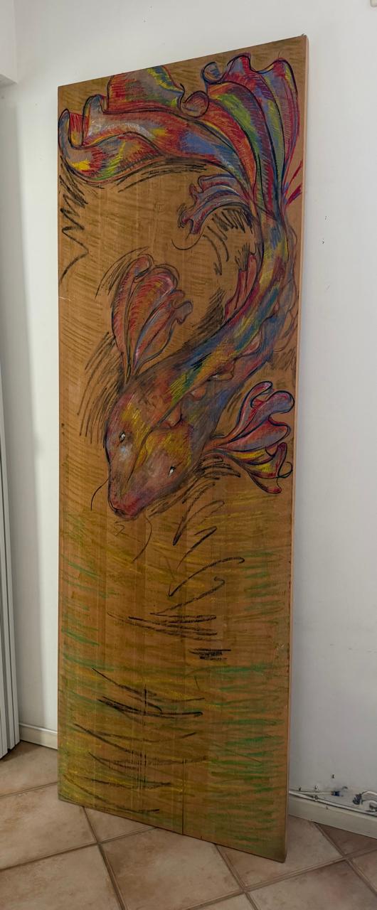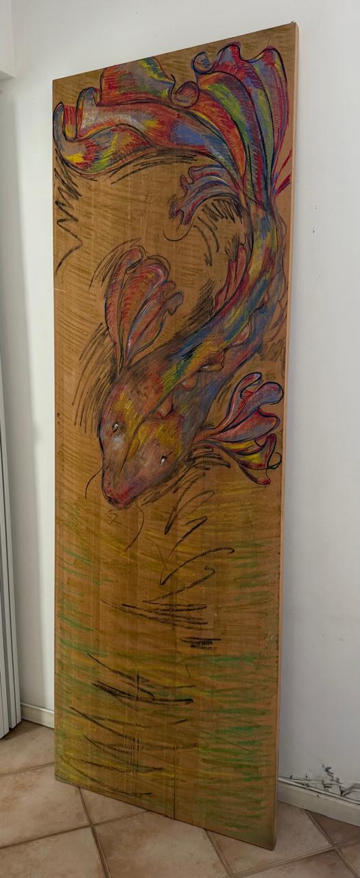 PINTURA EM GIZ – PAINEL PINTADO À MÃO – CARPA – BASE MADEIRA — A133.18