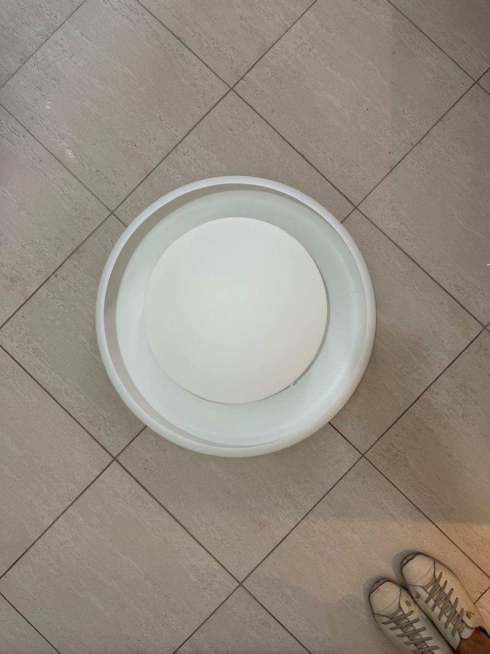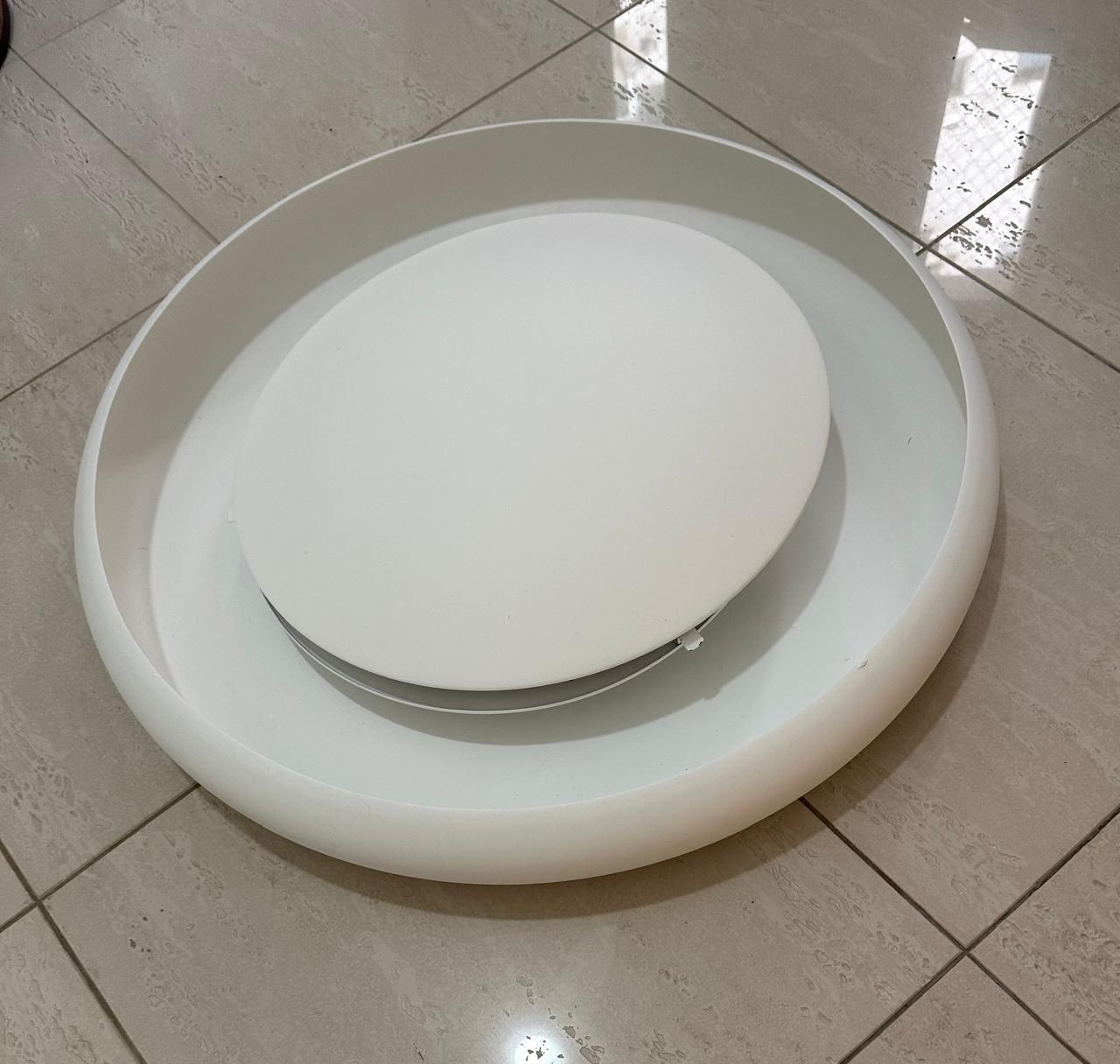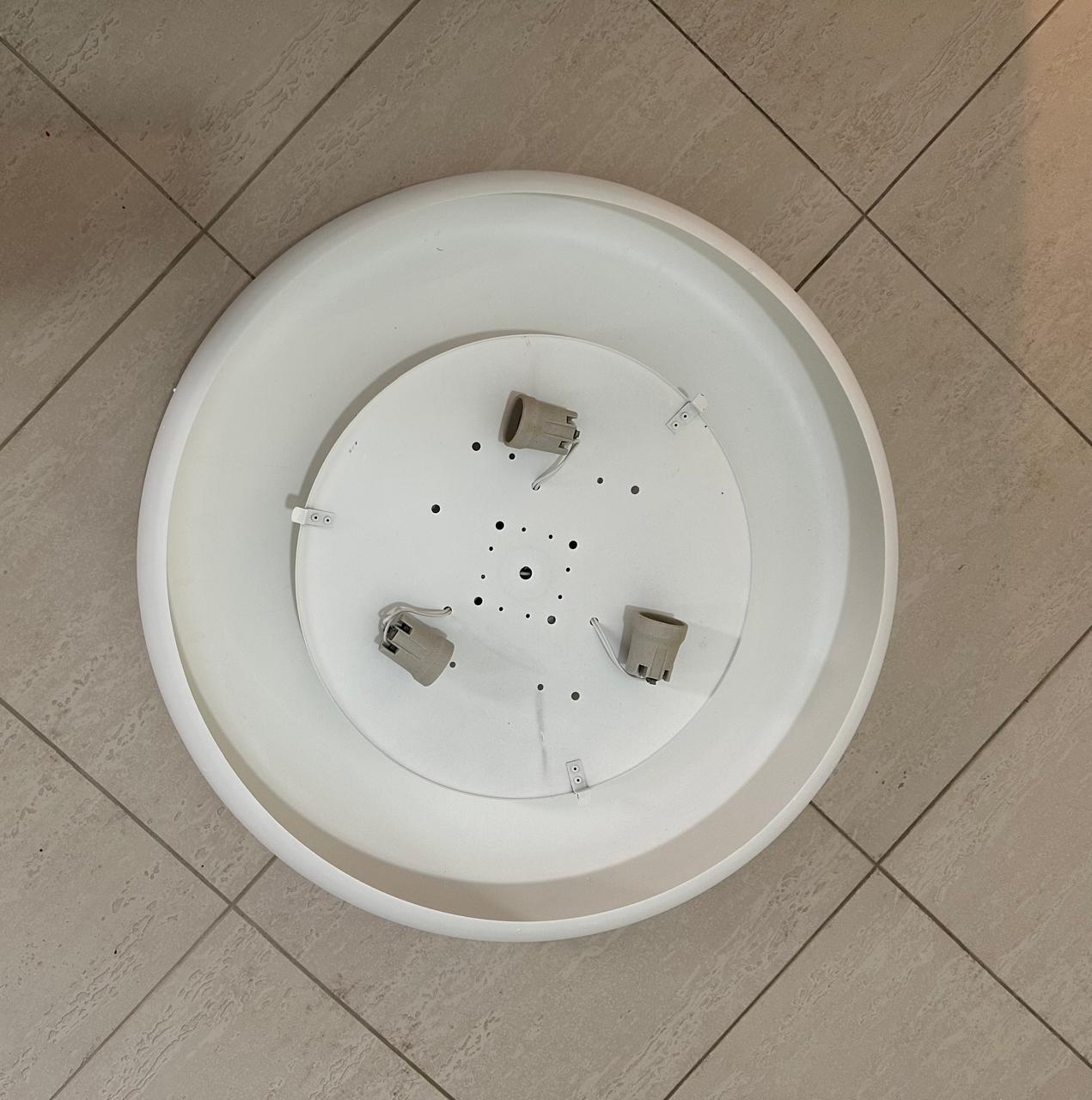 PLAFON – MODELO SEMELHANTE AO DONUTS – LINDO, GRANDE E ELEGANTE – ESTRUTURA DE METAL COM PINTURA CRESPA BRANCA – JÁ DESINSTALADO — E023.106