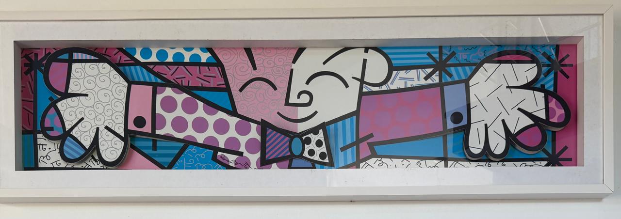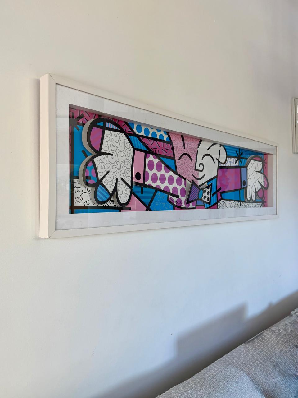 QUADRO COM GRAVURA NO ESTILO POP-UP – RÉPLICA DO QUADRO ABRAÇO DE ROMERO BRITTO — A136.08