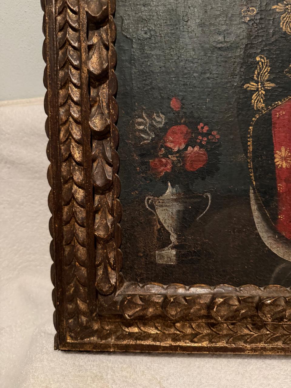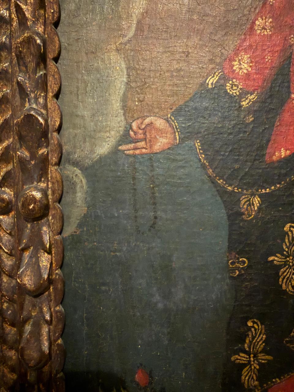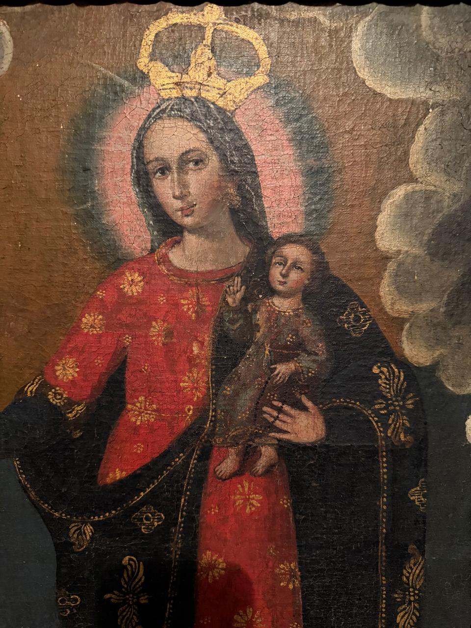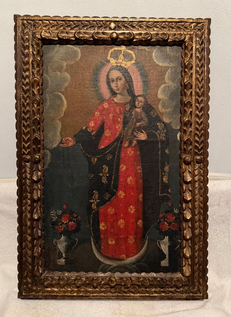 QUADRO CUSQUENHO ORIGINAL – TRAZIDO DE VIAGEM – MOLDURA EXCELENTE – NOSSA SENHORA DO ROSÁRIO – Óleo sobre tela — R003.447