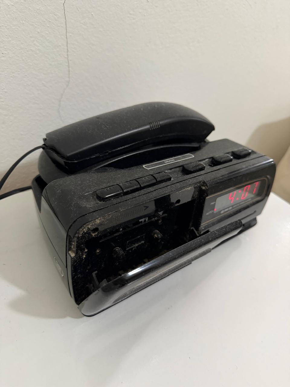 RÁDIO RELÓGIO – PARA QUEM GOSTA DE RELÍQUIAS – COM TELEFONE DE GANCHO + TOCADOR K7 — S086.43