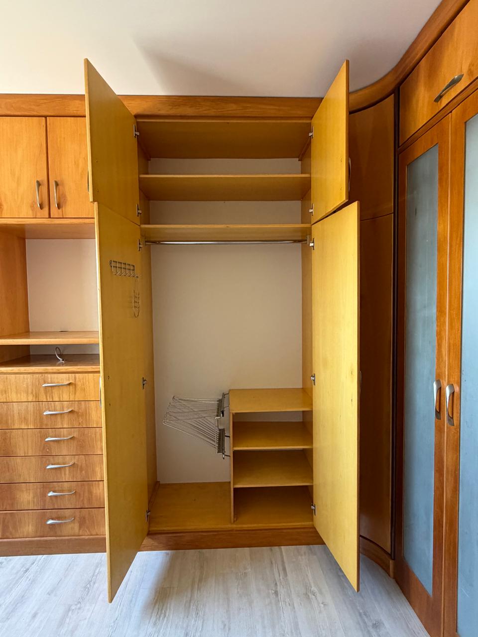 Maleiro, prateleiras, calceiro, cabideiro, gavetas de bijus ou meias, área de tv