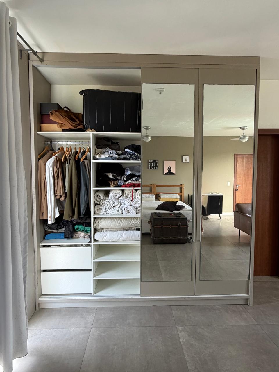 ROUPEIRO PLANEJADO – MDF – CINZA – 4 PORTAS DE CORRER – 2 COM ESPELHO – PRATELEIRAS, ARARAS E GAVETAS — J060.101