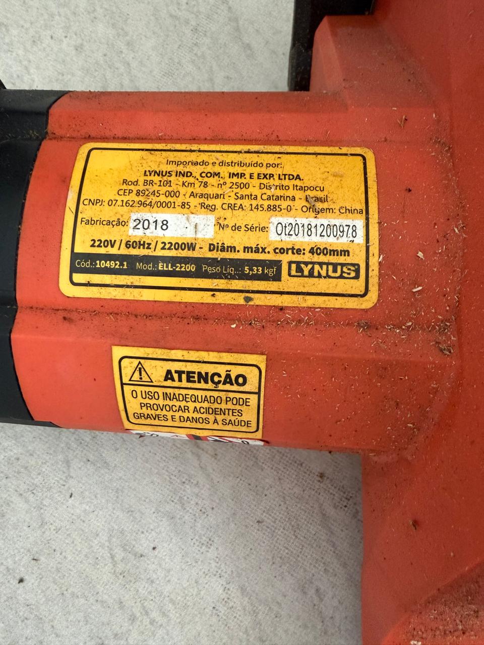 SERRA ELÉTRICA LYNUS – 2200 W – ANO 2018 — M141.14