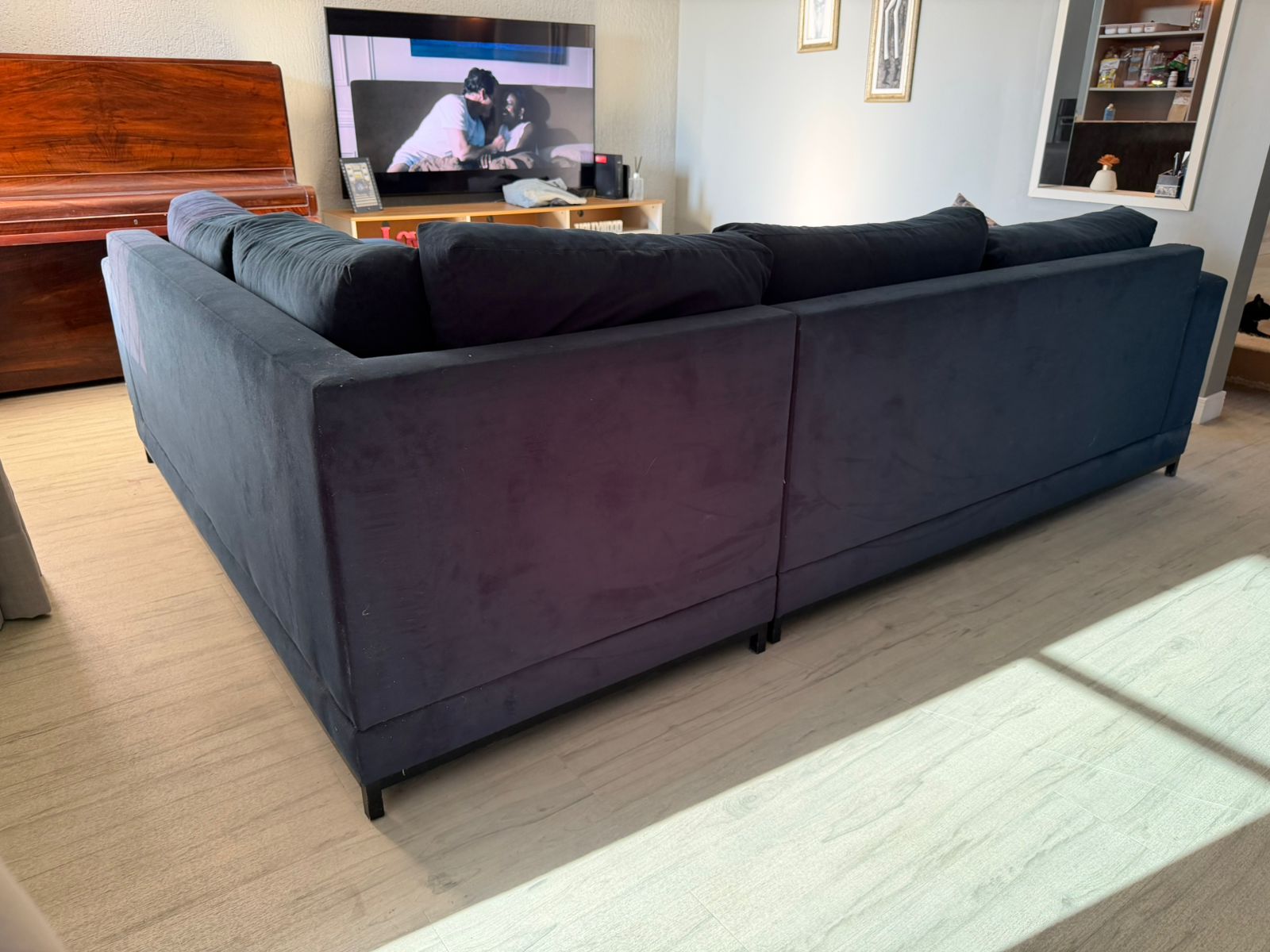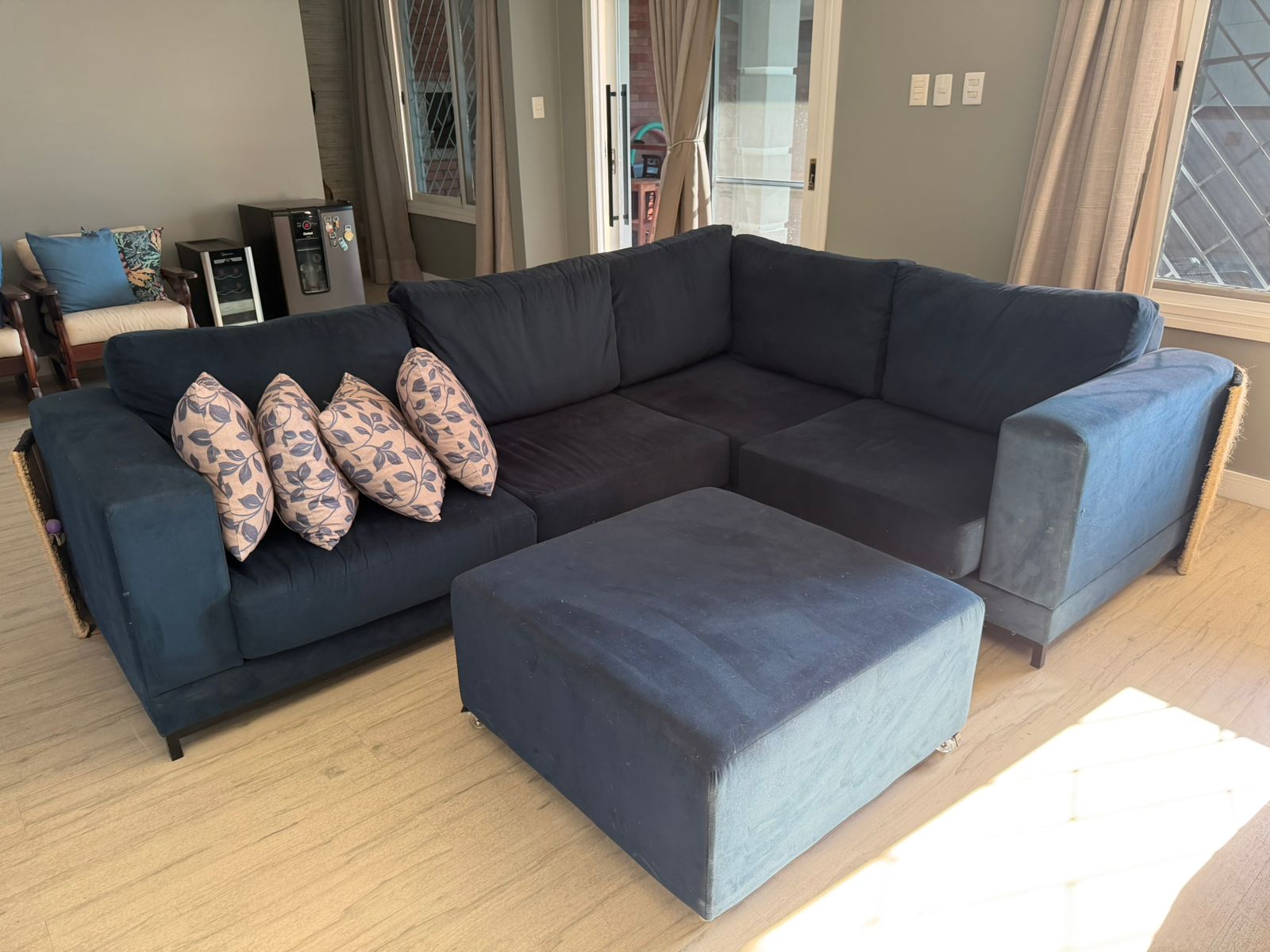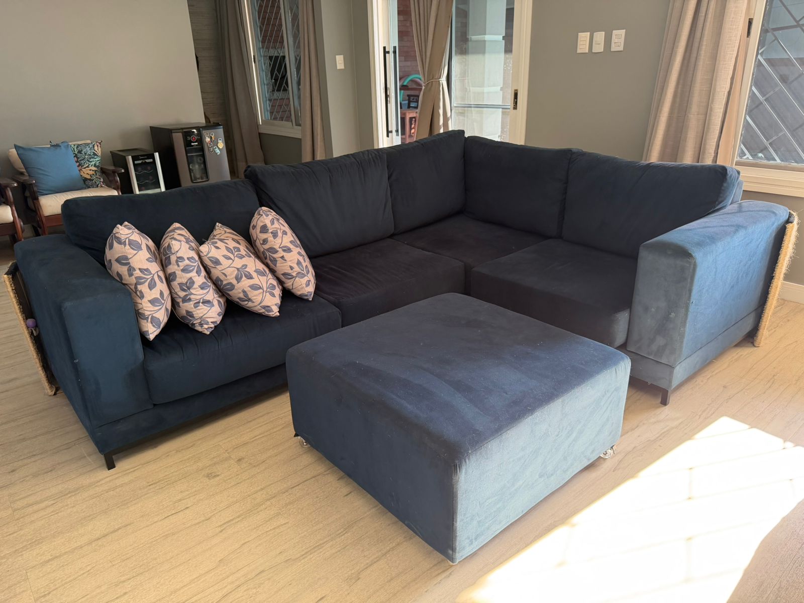 SOFÁ EM L + PUFE COM RODÍZIO – AZUL – BIPARTIDO — J028.100