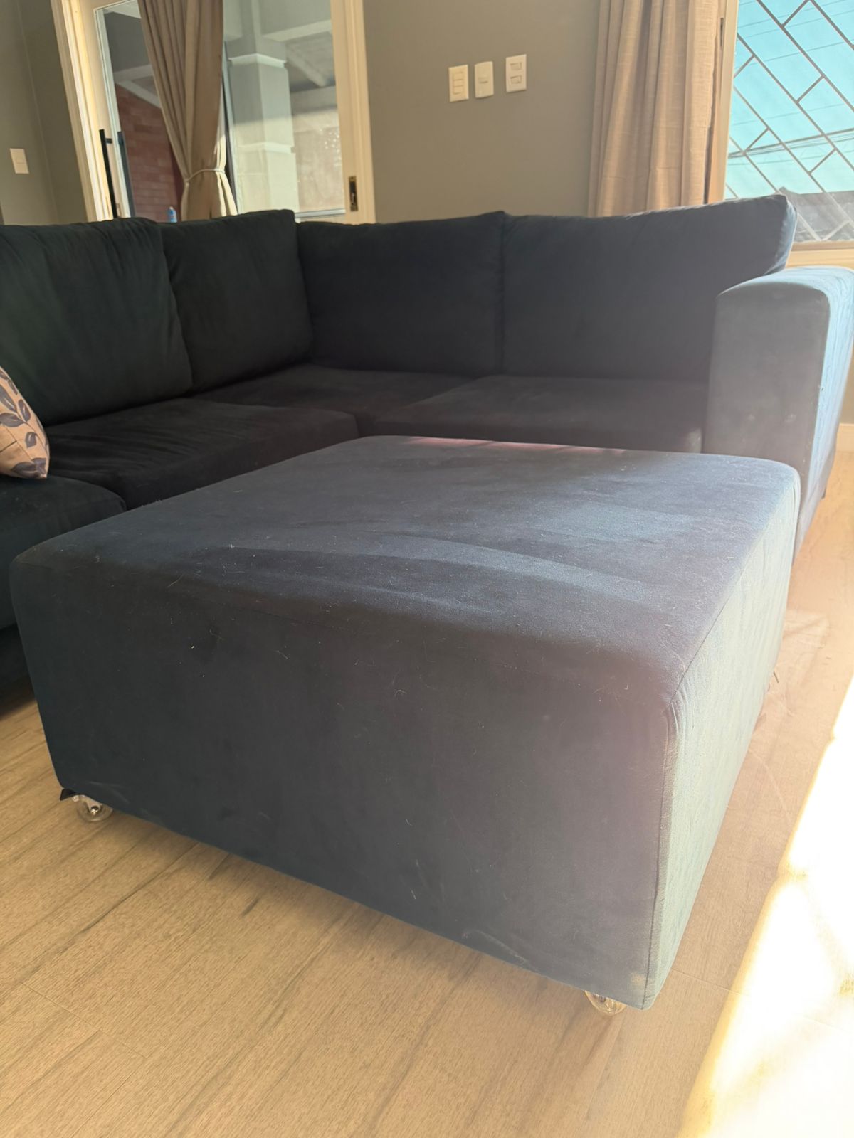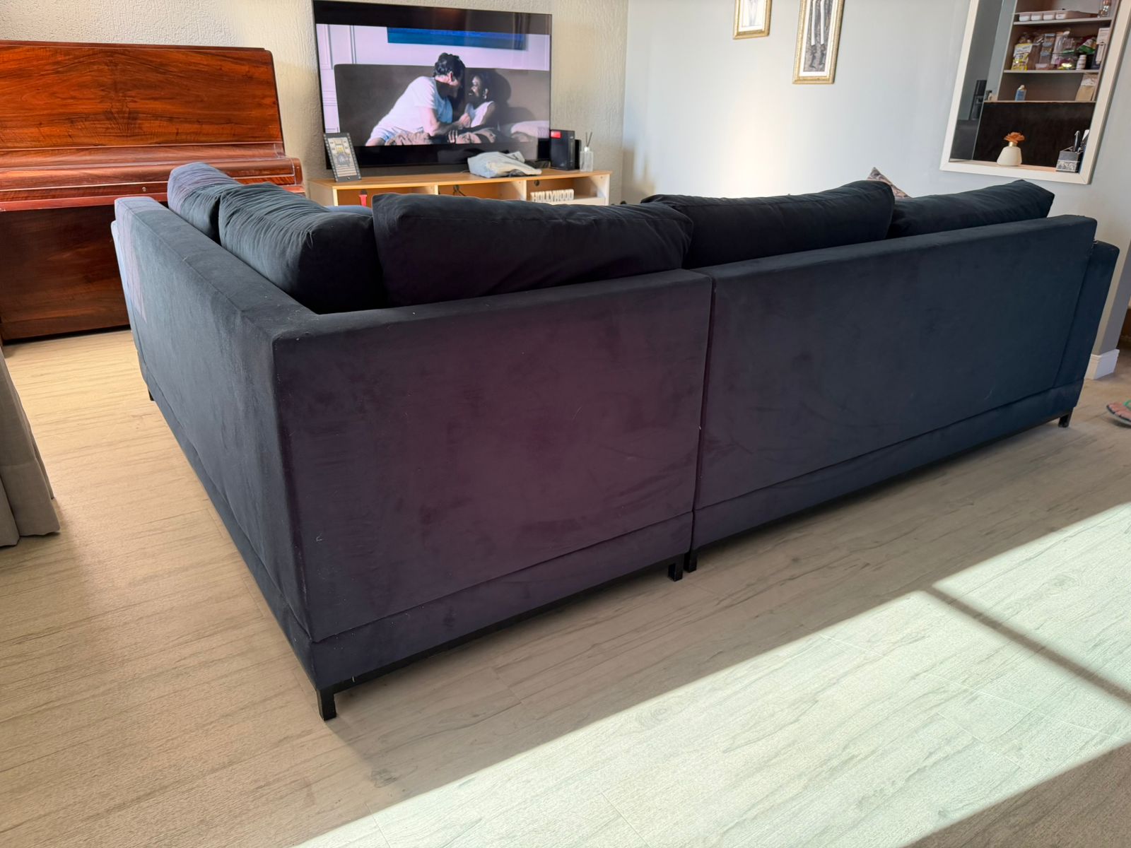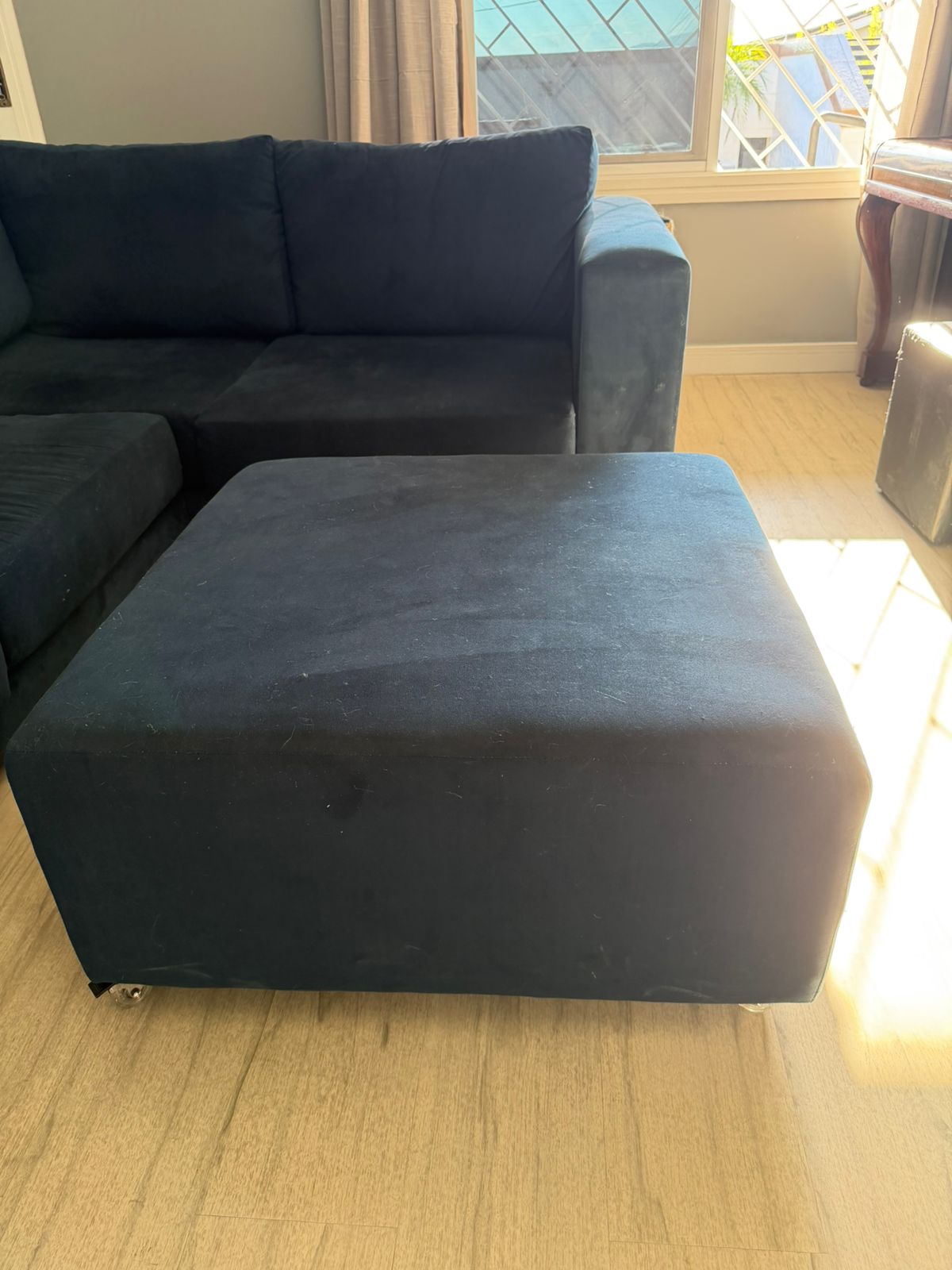 SOFÁ EM L + PUFE COM RODÍZIO – AZUL – BIPARTIDO — J028.100