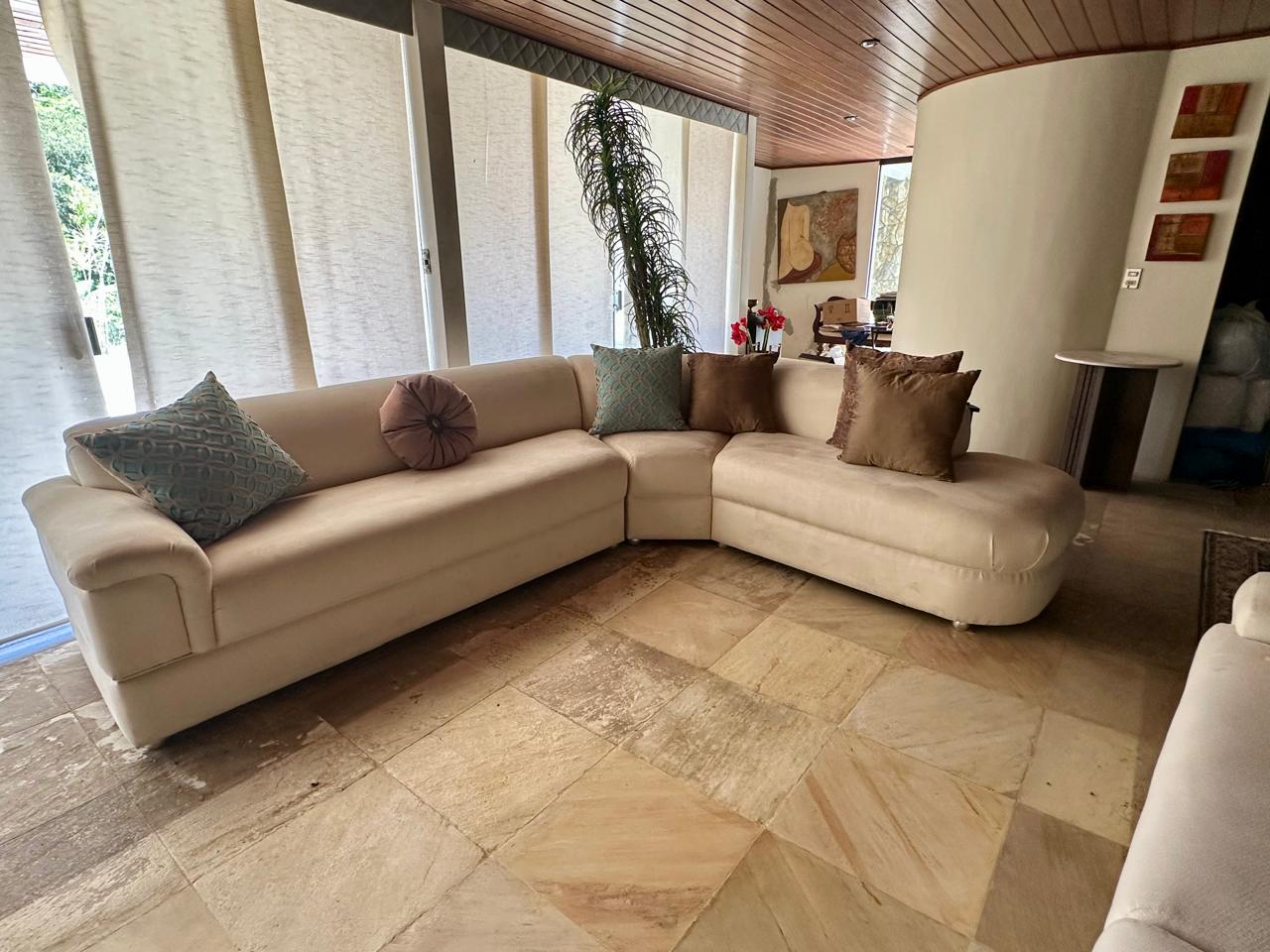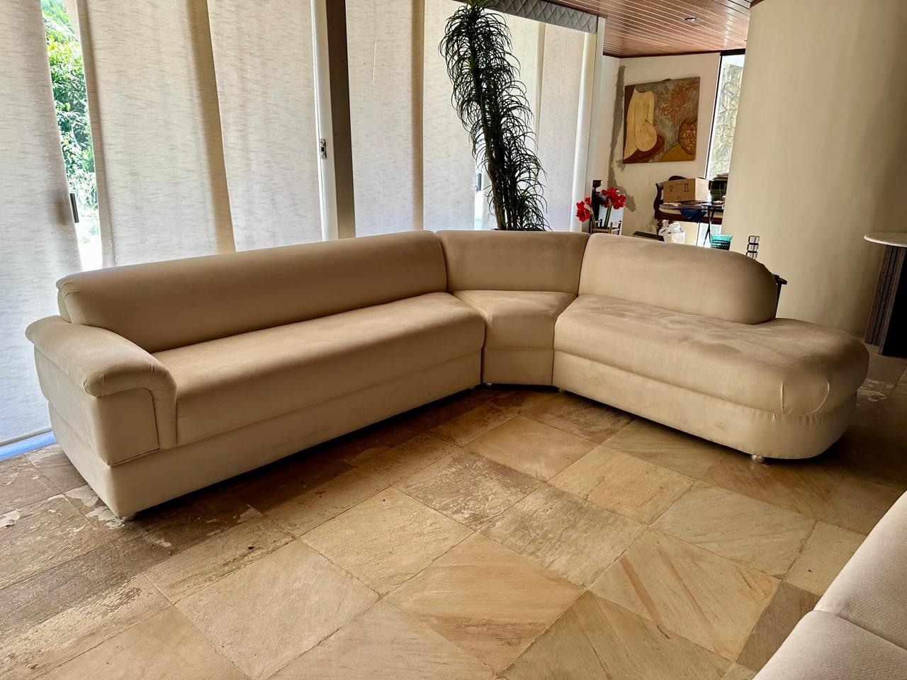 SOFÁ GRANDE EM L – SUEDE – 3 PARTES – ARREDONDADO — R093.08