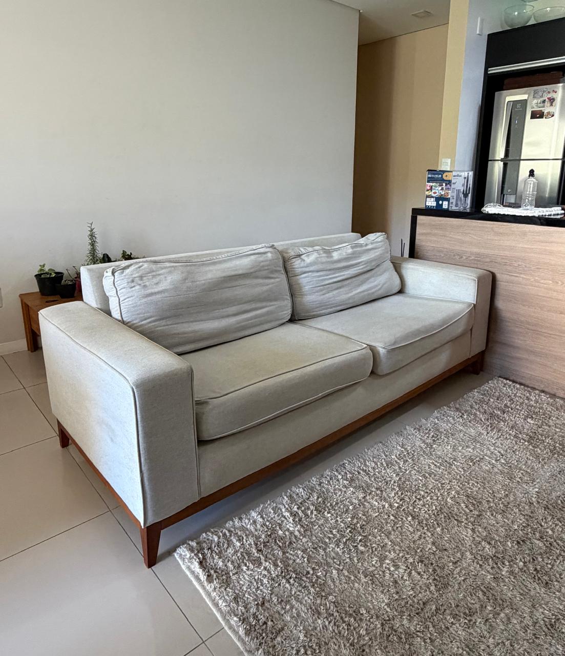O sofá é uma graça e tem o tamanho ótimo para ambientes com menos espaço