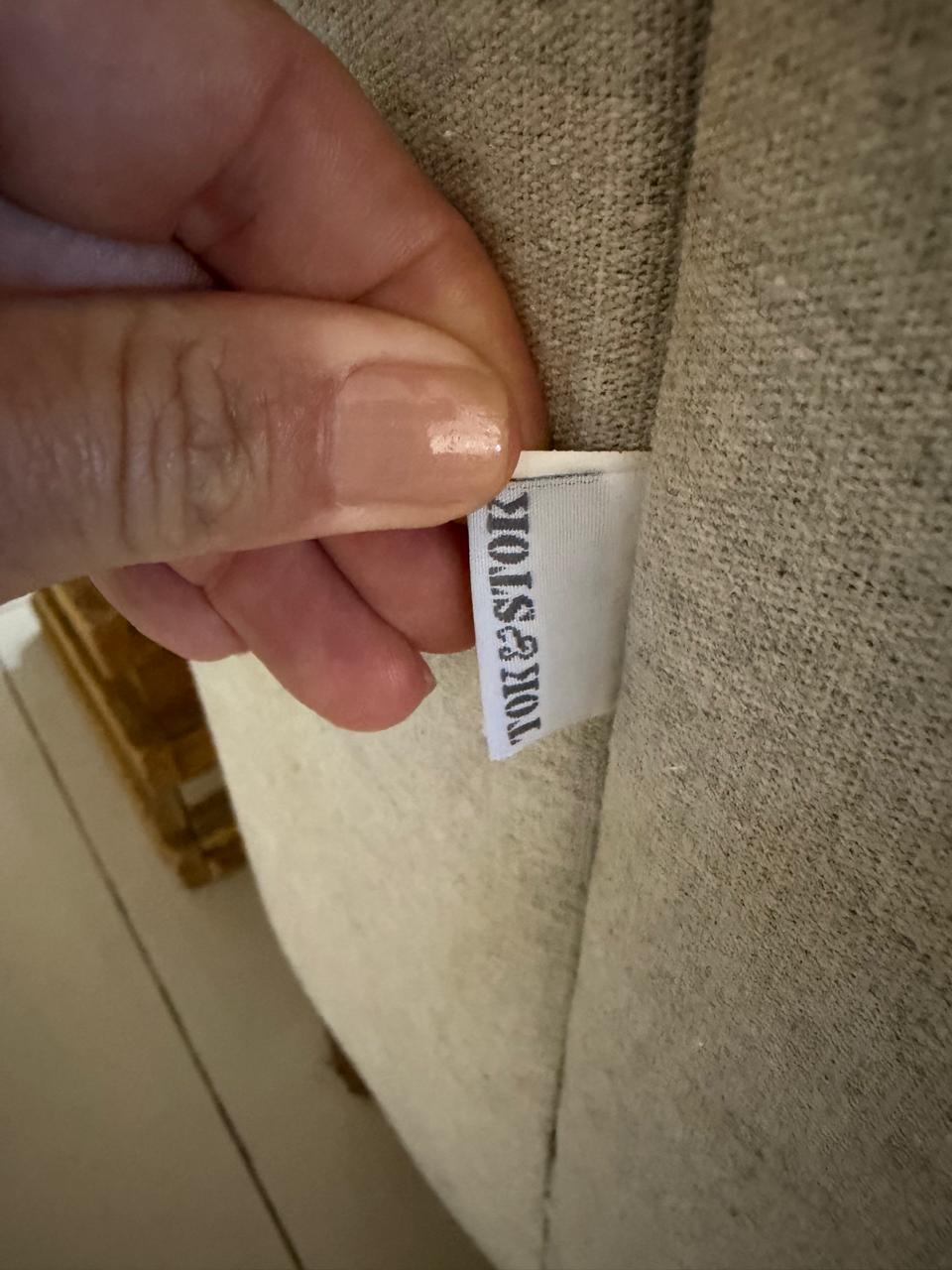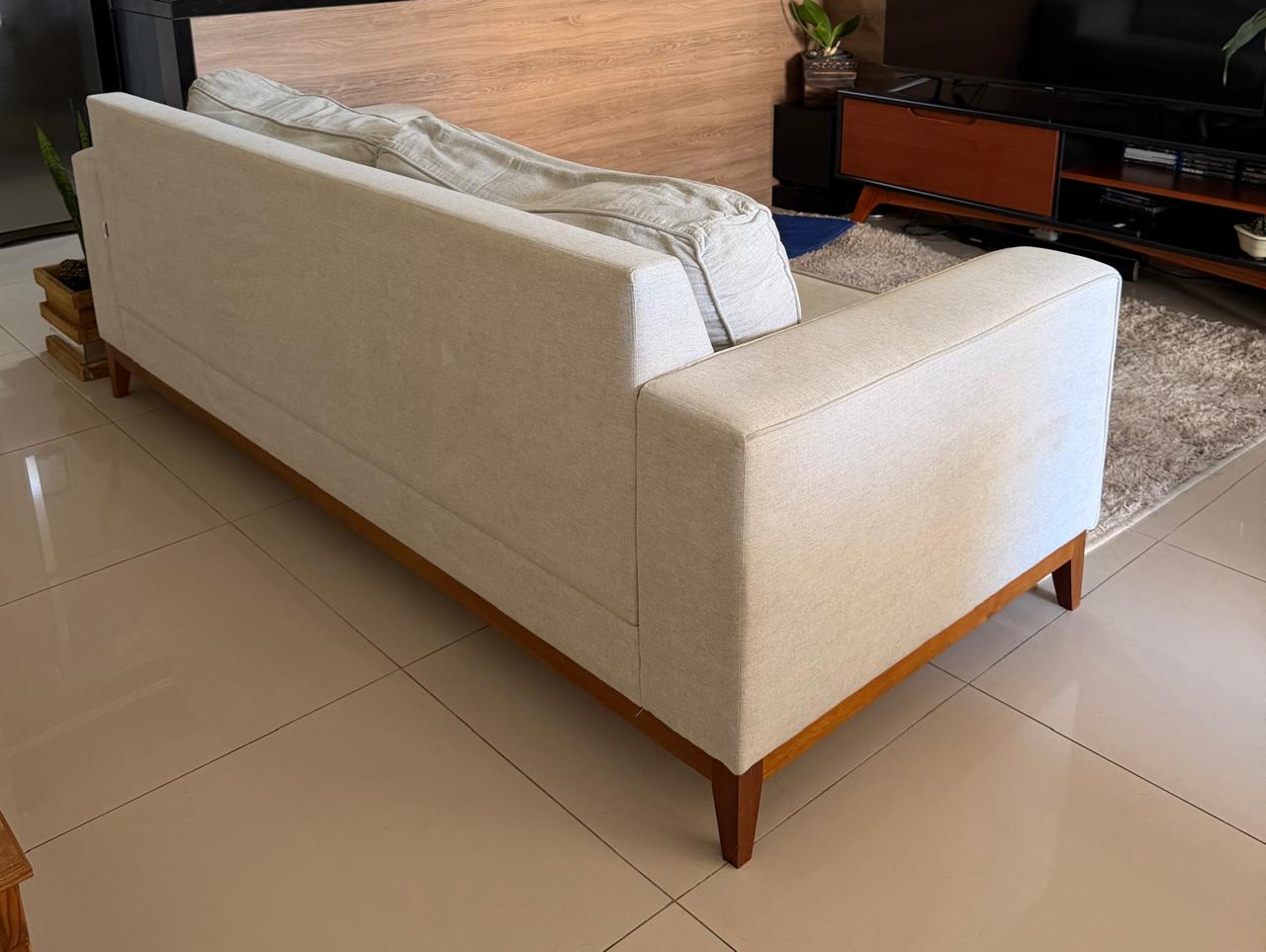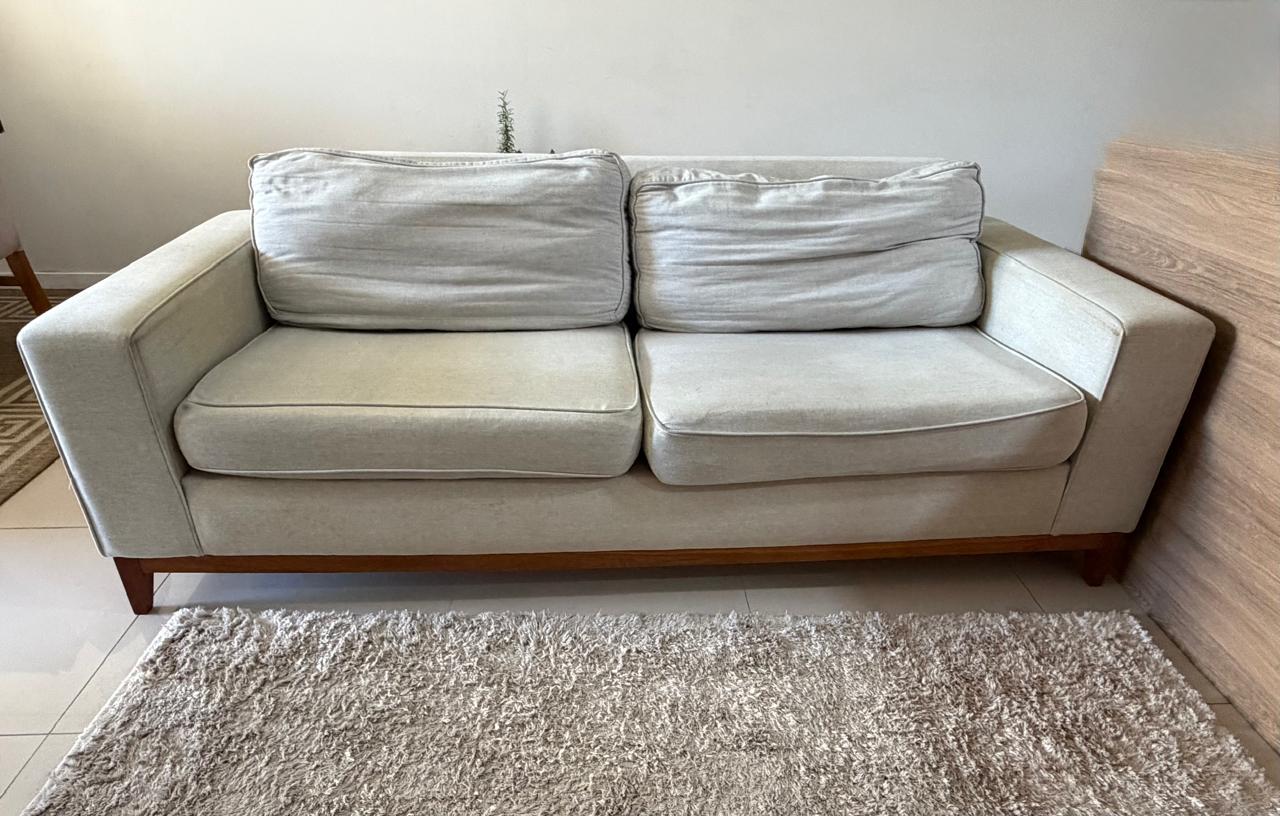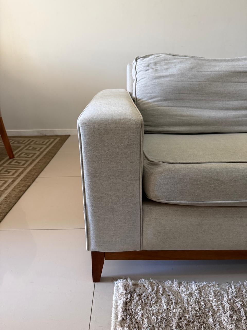 SOFÁ – MODELO LAW DA TOK STOK – BASE MADEIRA – LINHO CINZA CLARO — C089.01