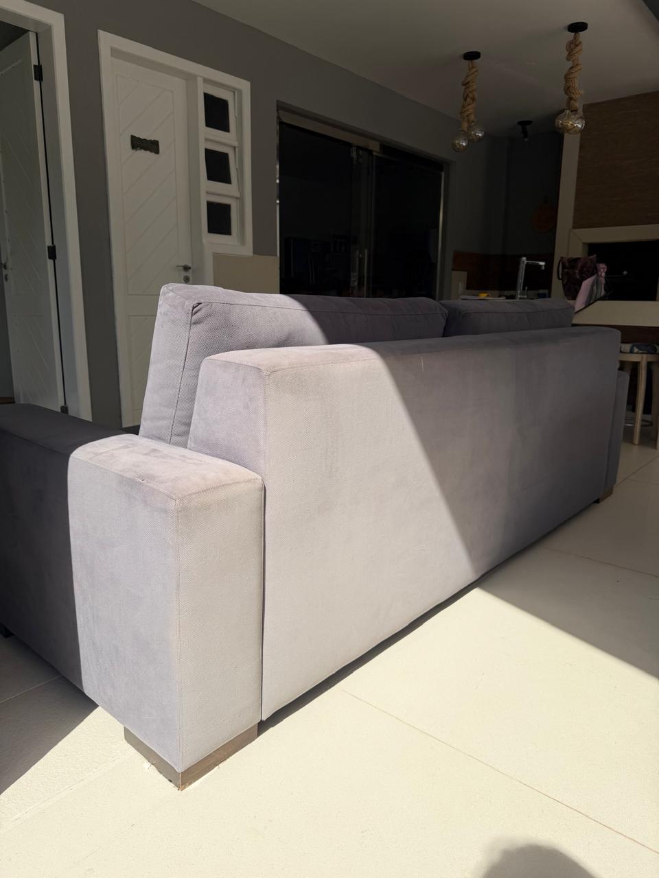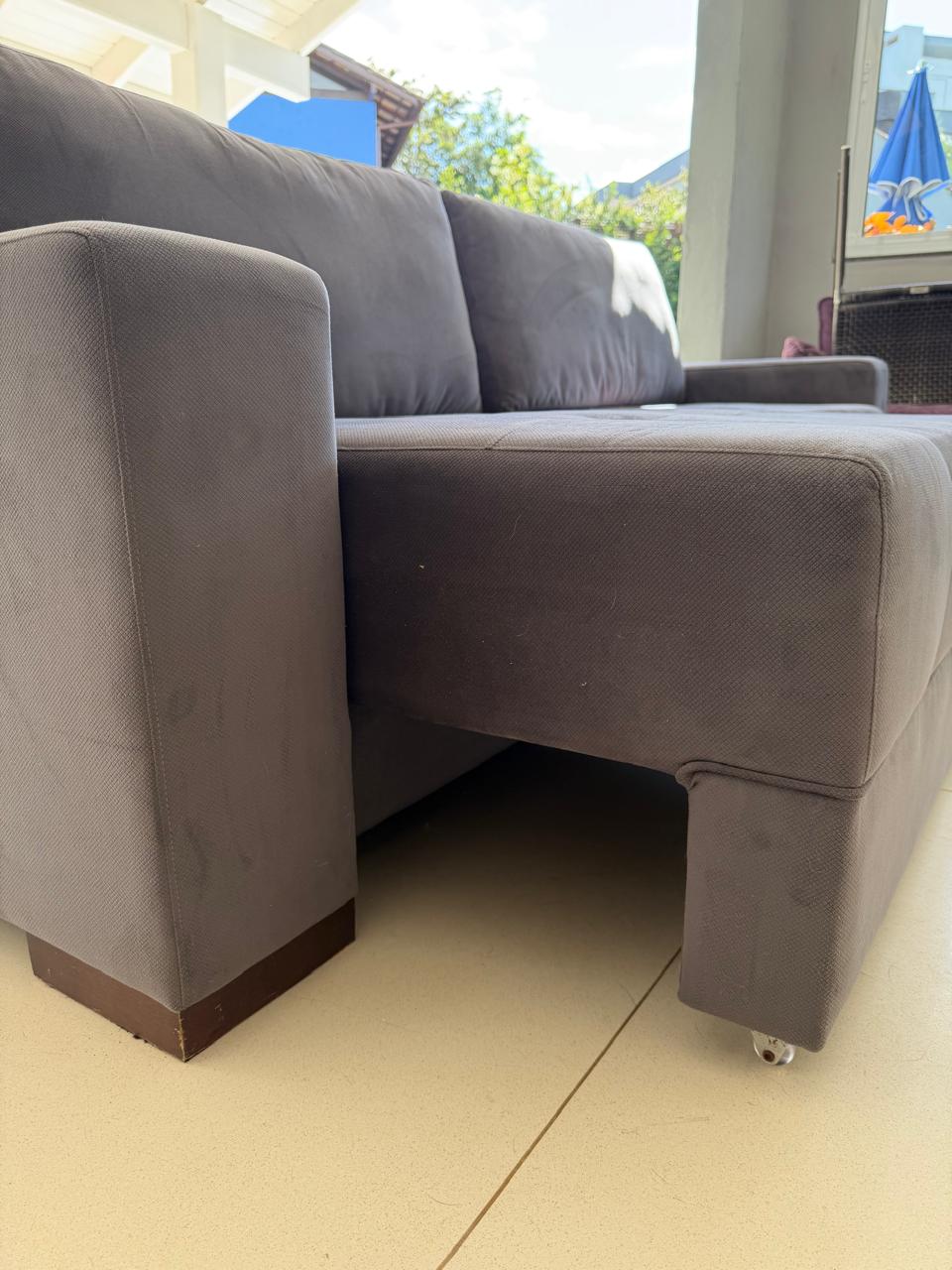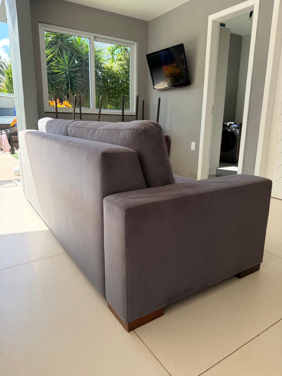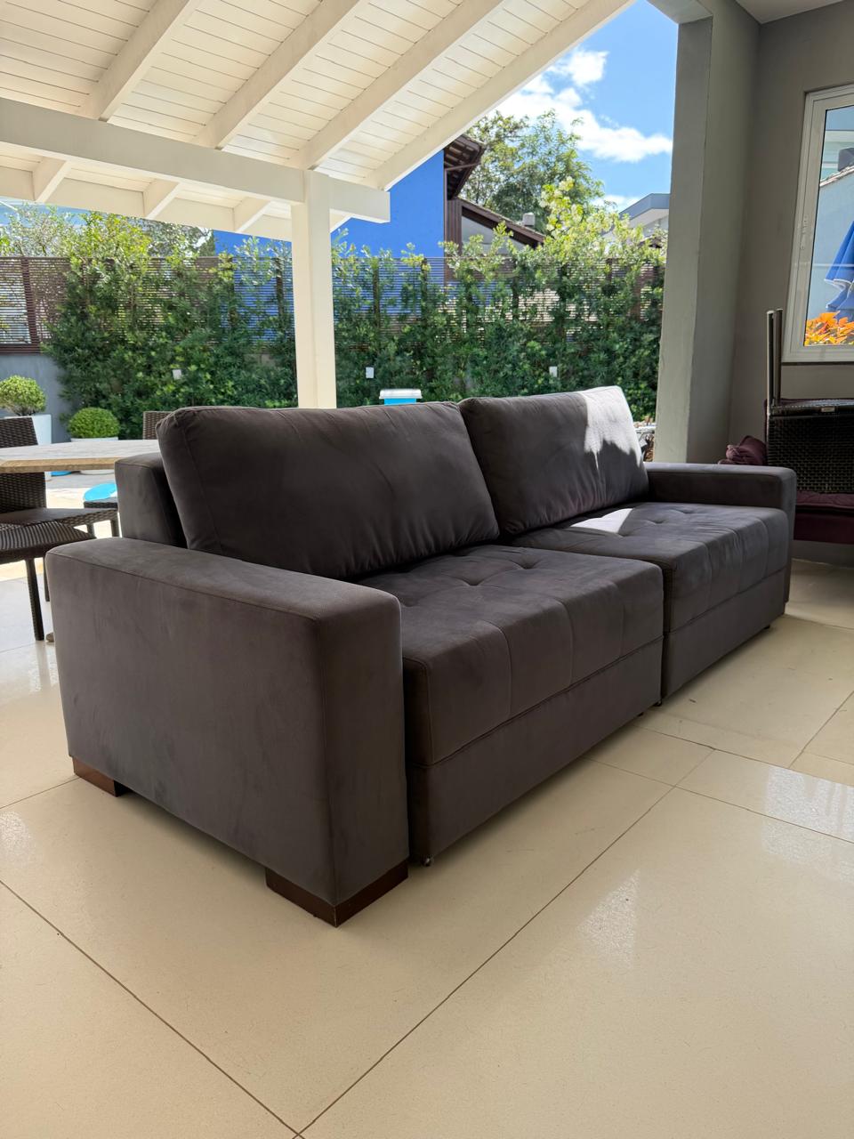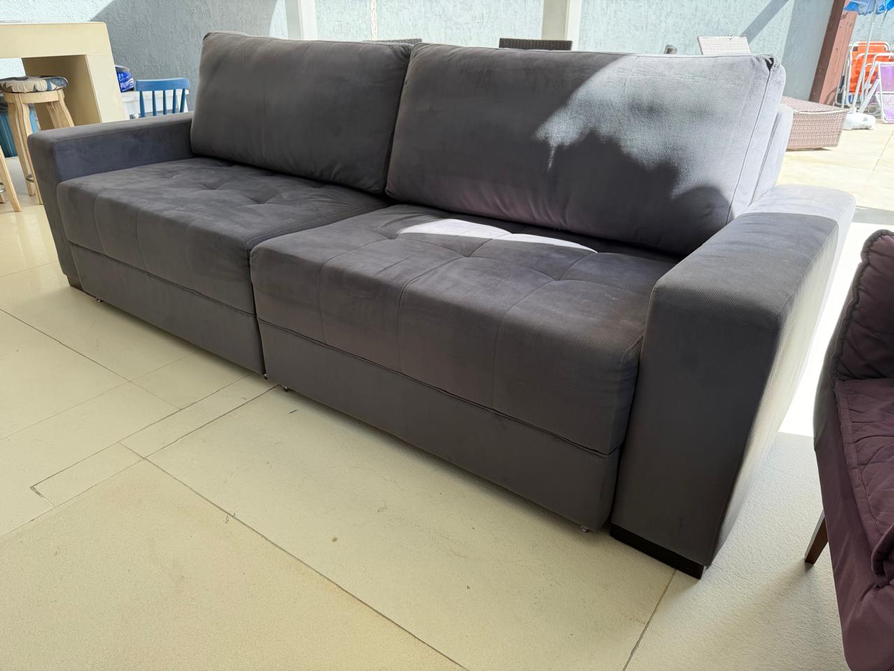 SOFÁ RETRÁTIL – BIPARTIDO – TECIDO CINZA ESCURO – AVELUDADO – ENCOSTO RECLINÁVEL — V049.01