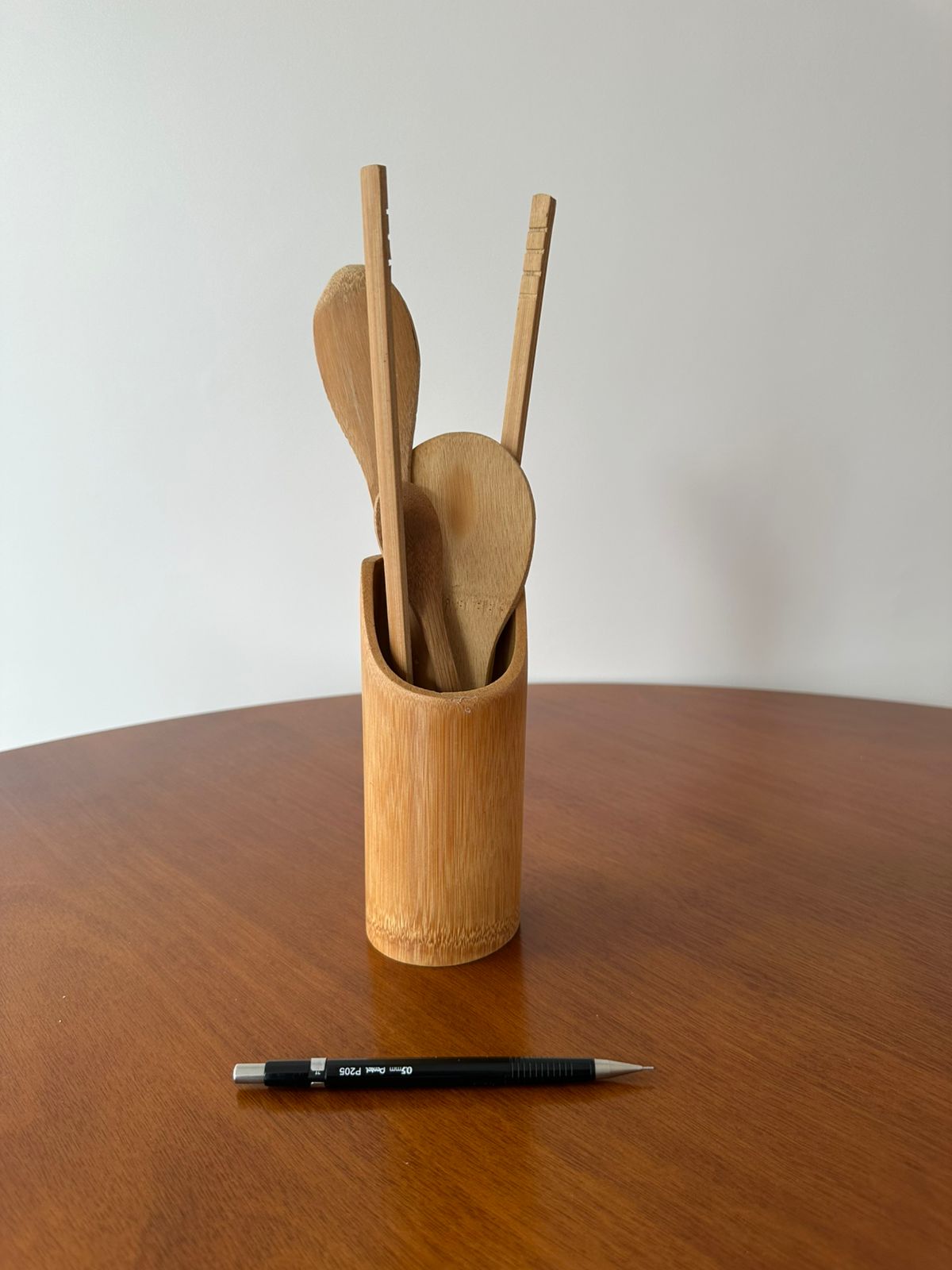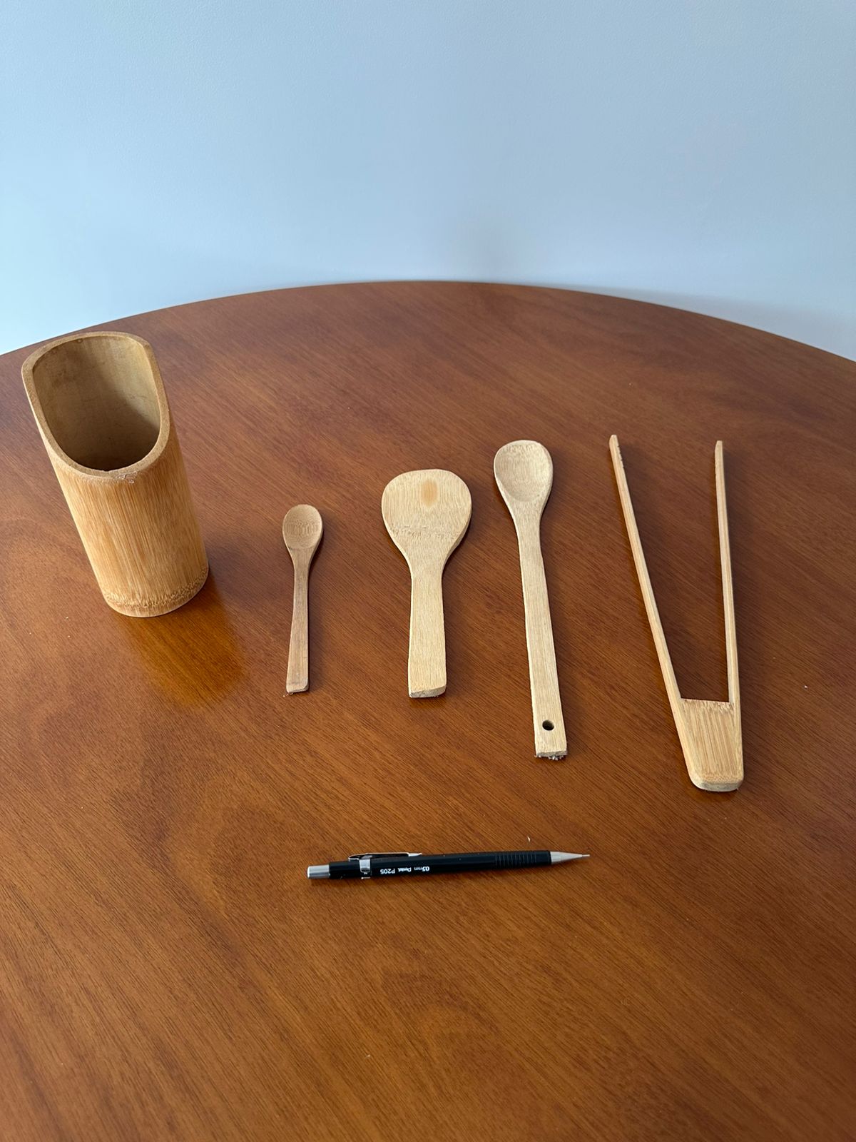 SUPORTE TALHERES BAMBU + 03 COLHERES + 01 PINÇA GRANDE – R083.13