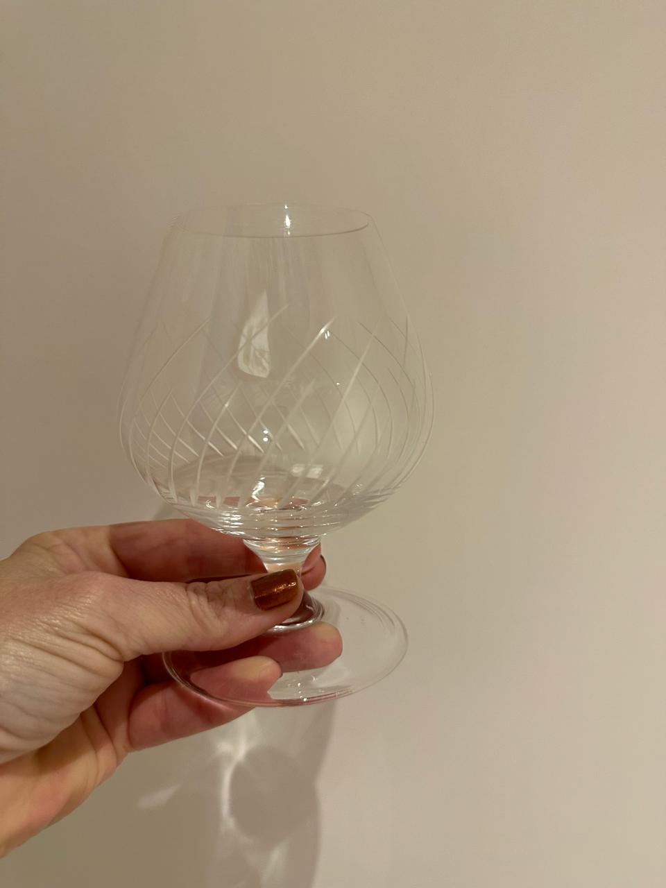 TAÇAS CRISTAL LAPIDADO STRAUSS — CONHAQUE GRANDE — LOTE ÚNICO COM 11 UNIDADES