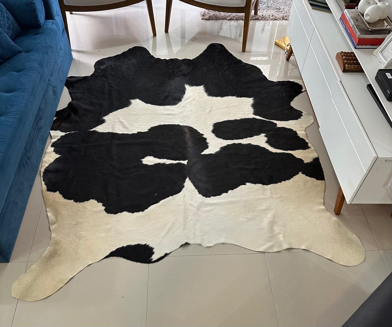 TAPETE COURO LEGÍTIMO — PRETO E BRANCO